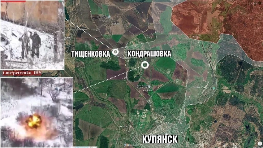 В Купянске вражеские группы по-прежнему действуют практически по всей территории города и пытаются выбить российские подразделения с северных окраин. На юго-востоке, в окрестностях села Подолы, в Куриловке и в районе Песчаного работают наши расчёты БПЛА. На севере участка ВС РФ увеличили зону контроля на 1 км, зайдя на восточные окраины Тищенковки. Неясная ситуация остаётся в соседней Кондрашовке, поскольку нет данных о российском контроле над селом.