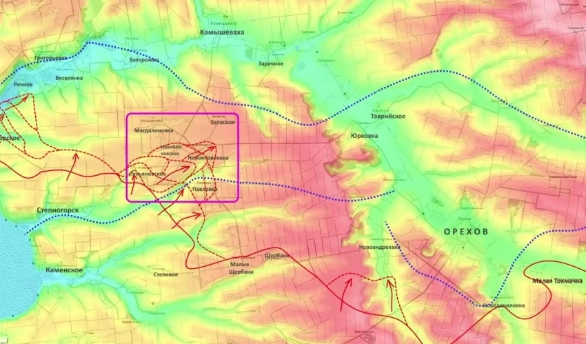 Потеря этих рубежей вынудит ВСУ откатиться к естественной преграде - линии реки Конка (населённые пункты Речное, Веселянка, Запорожец). Это неизбежно приведет к боям уже на окраинах Камышевахи и Заречного.