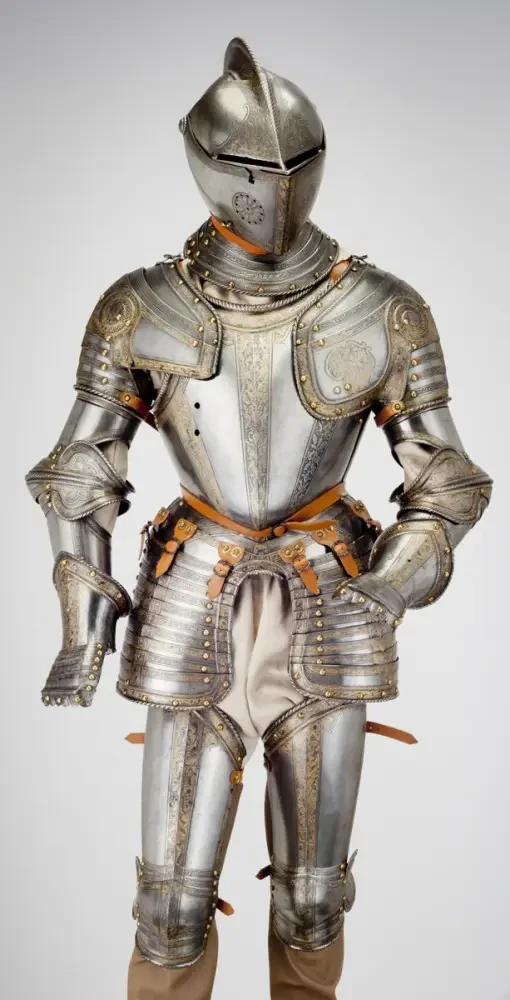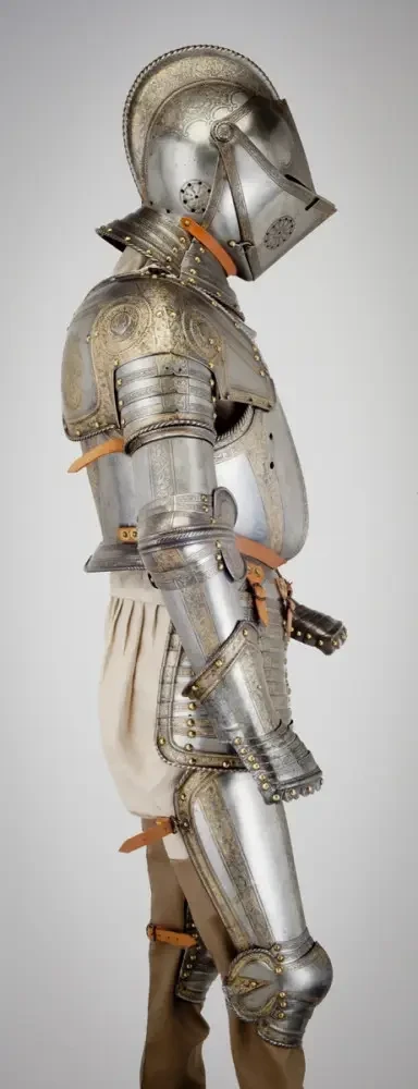 Трехчетвертной доспех примерно 1595-1601 гг. Принадлежал Генри Риотсли, 3-у графу Саутгемптона. Также экспонируется в музее в Лидсе, в «Военной галерее»