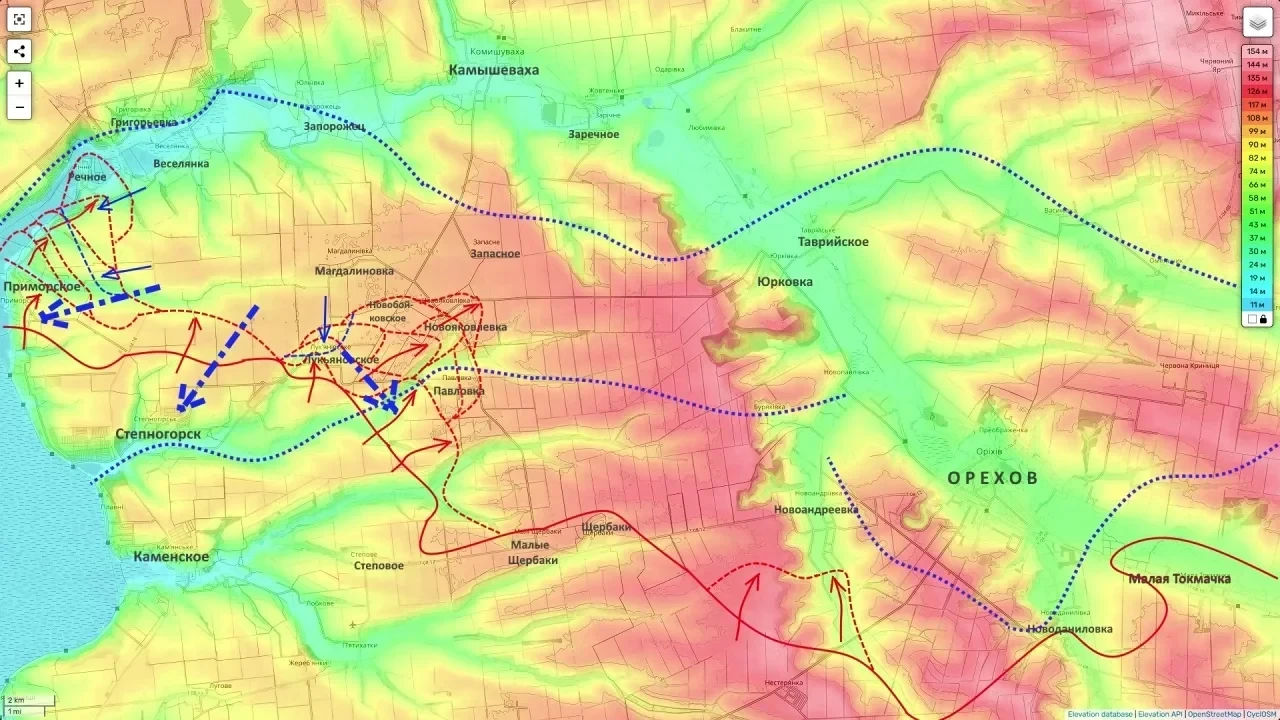 На текущий момент ситуация остаётся сложной, но российские бойцы стойко отражают натиск врага. Противнику удалось зайти в северную часть Лукьяновского, идут ожесточенные бои буквально за каждый дом. Также российские подразделения были вынуждены оставить Речное, бои сместились на северные окраины Приморского. Группировка «Днепр» держит удар, идет перегруппировка резервов для стабилизации фронта.