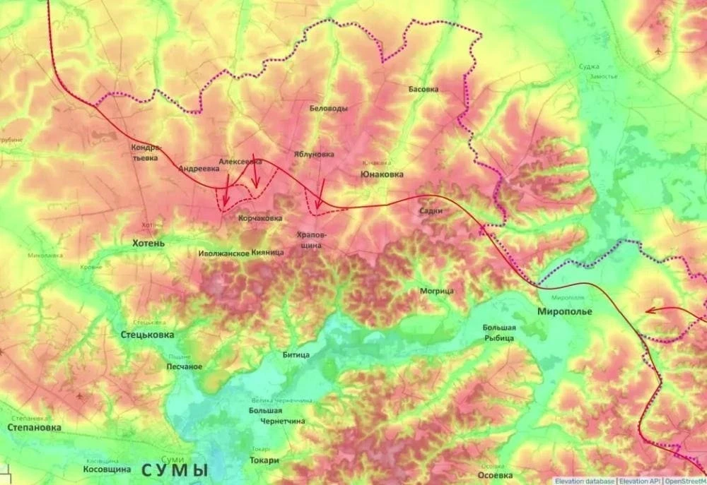 Задача - срезать выступ, примыкающий к Брянской и Курской областям, улучшить логистику и создать для противника неблагоприятную конфигурацию фронта. Бои фиксируются также севернее Сум - в районах Корчаковки, Храповщины и Краснополья (Новодмитровка).