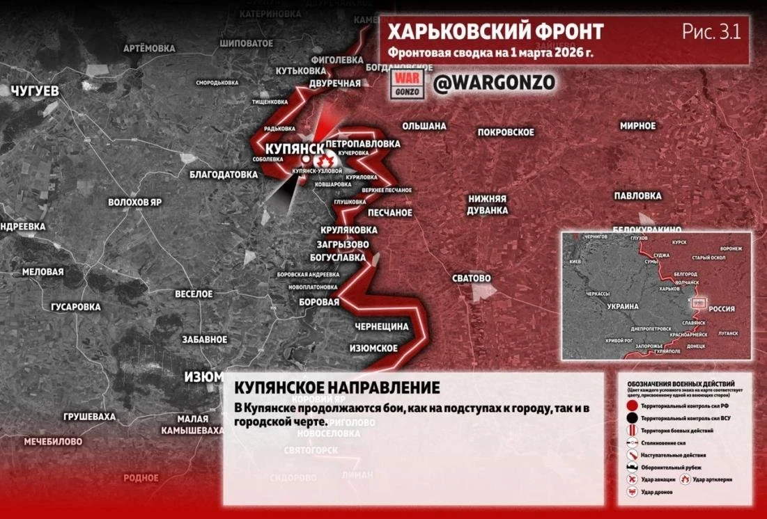 Карта боевых действий на Купянском направлении: свежие данные на 01.03.2026