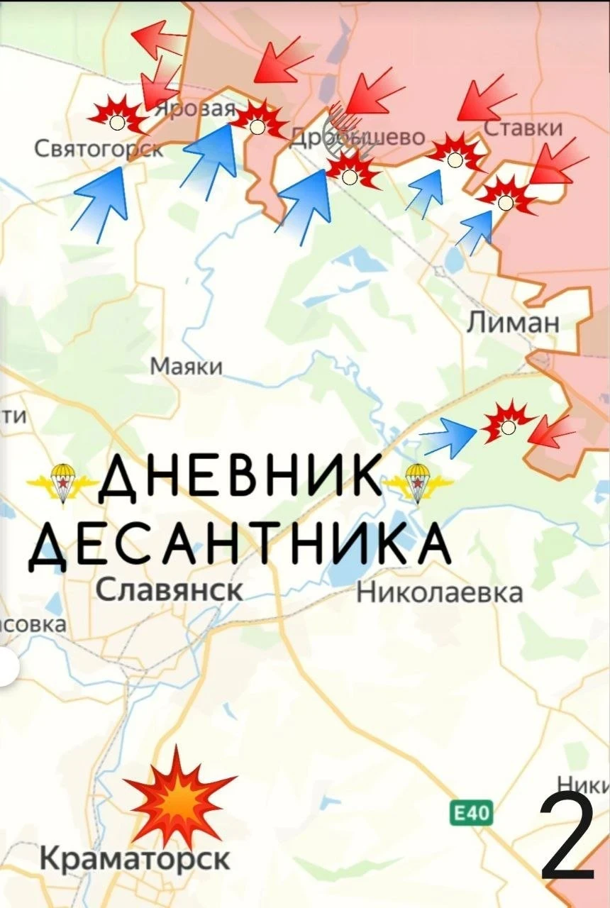 Необходимо подчеркнуть, что на Славянском направлении ВС России ещё не завершили освобождение Красного Лимана. Однако это не мешает движению войск в направлении главного укрепрайона противника на Донбассе.