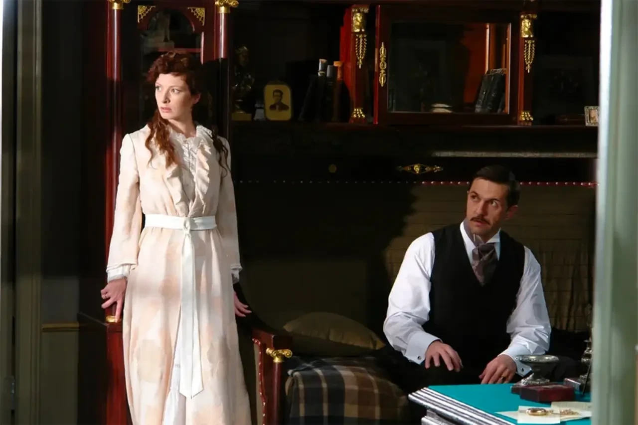 Они занимали три комнаты, заставленные такими обжитыми «дедовскими» вещами. Старенький скрипучий буфет, из которого вынимались тонкого стекла бокалы с вензелями, а на стол ставились фамильные тарелки, выцветшие, поцарапанные от долгого служения, но гордо хранившие корону и инициалы своих владельцев. В кабинете графа-комбрига, маленьком и тесном, на стенах были развешаны пистолеты, сабли, карты, подвешено кавалерийское седло; стоял глобус и на этажерке — альбом с фотографиями, где Наталья Владимировна была запечатлена обнаженной на сцене.