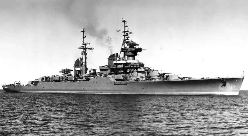 Крейсер проекта 68-бис ведет огонь из орудий главного калибра