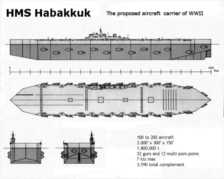 Сравнительные размеры «Хаббакука» и британского авианосца “Indefatigable”