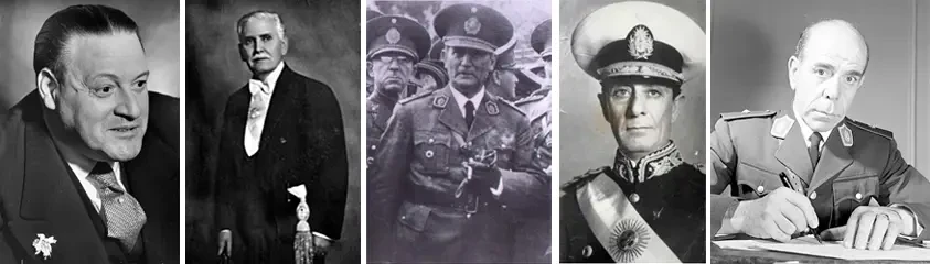 Слева направо: Роберто Мария Ортис, Рамон Антонио Кастильо, Артуро Росон Корвалан, Педро Пабло Рамирес, Эдельмиро Хулиан Фаррель