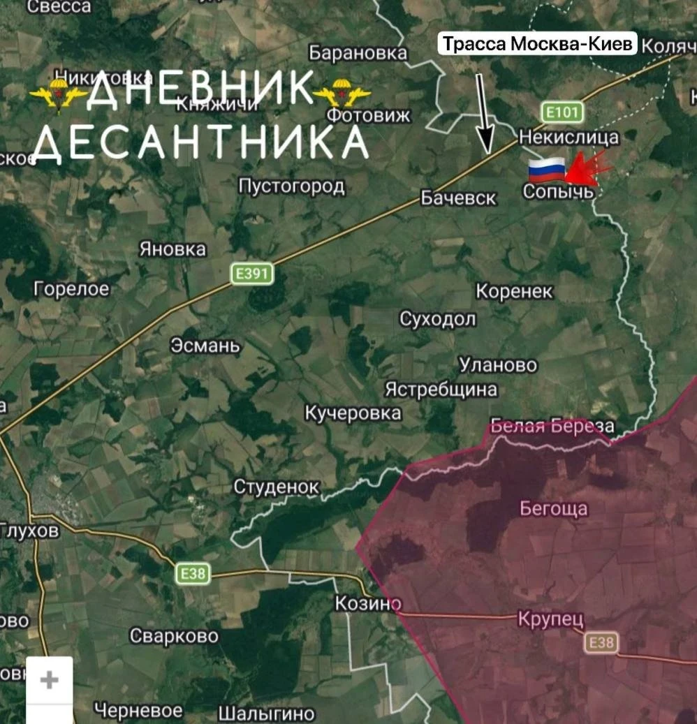 В Глуховском районе после освобождения села Сопычь наши войска ведут работу по расширению зоны безопасности. Данный участок является стратегически важным из-за близости трассы Москва - Киев. В ходе боевых действий мирные жители были эвакуированы на территорию РФ, а позиции ВСУ методично уничтожены.