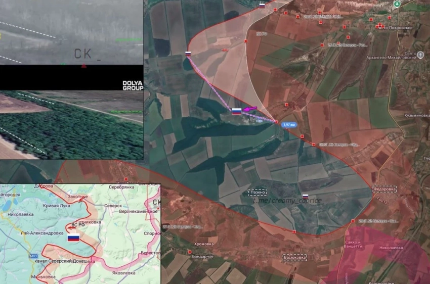 Ещё один вектор движения формируется северо-западнее Клебан-Быкского водохранилища. Здесь российские силы постепенно продвигаются вперёд, создавая условия для выхода к населённому пункту Райское. Этот участок рассматривается как перспективный для дальнейшего развёртывания боевых действий.