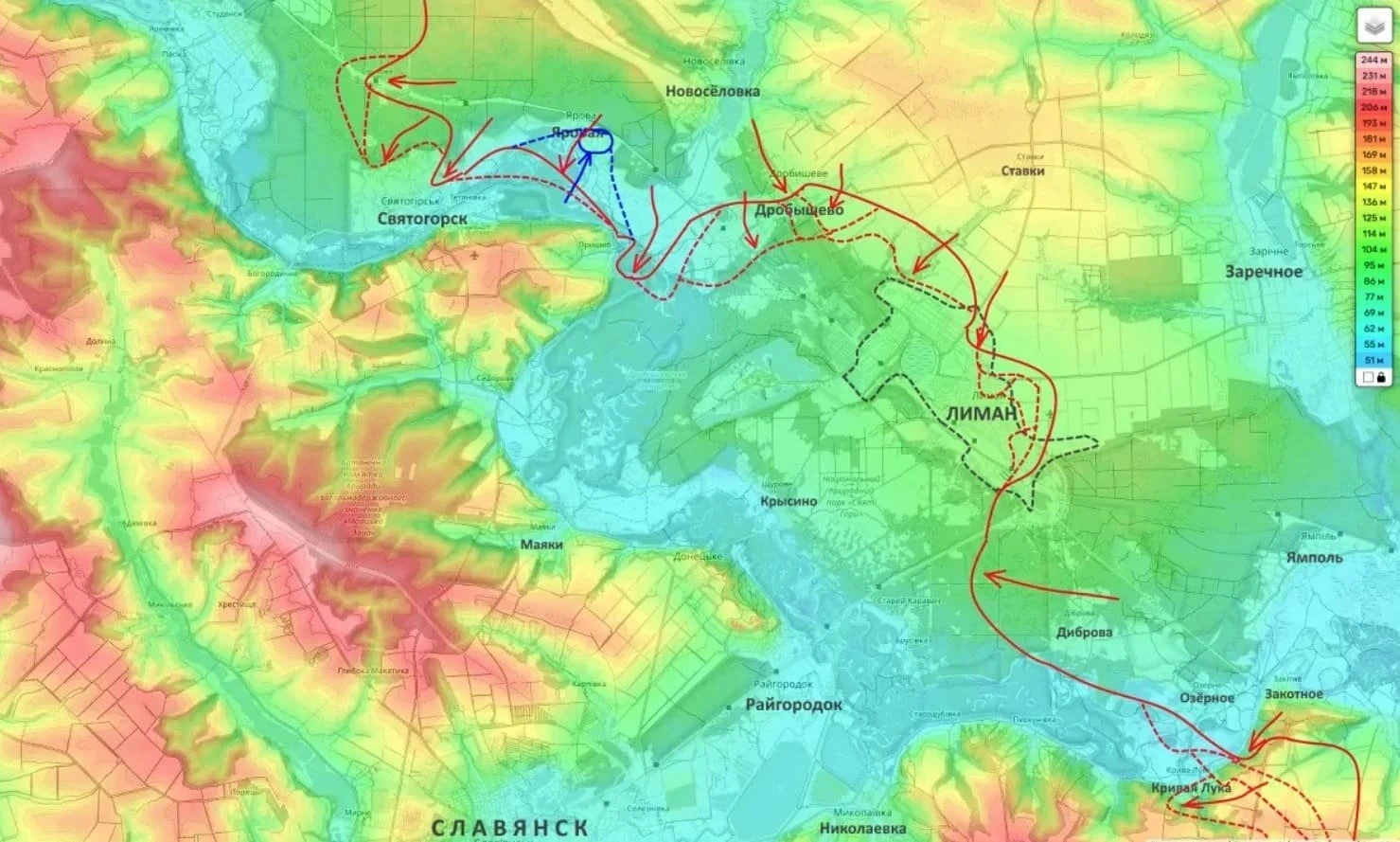 "Особенно с учётом того, что у нас есть успехи южнее Лимана, противник всеми силами пытается удерживать здесь позиции как можно дольше, чтобы оттянуть наше продвижение к Славянску с северо-востока", - проинформировал Подоляка.