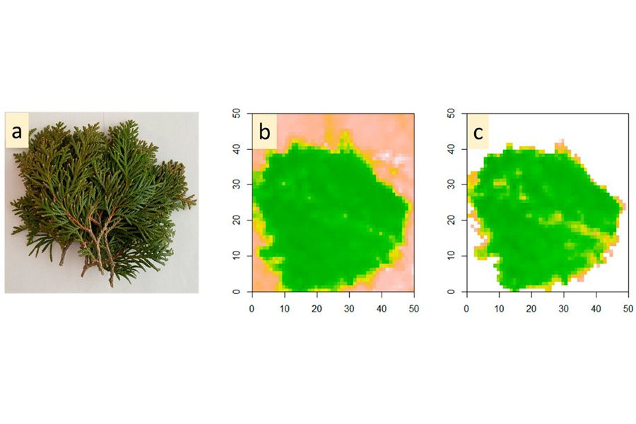 Полученные кадры сравнивают с «идеальными» спектральными характеристиками здорового хвойного дерева в покое и в состоянии вегетации, определенными с помощью математического моделирования. Так, в рамках исследования заранее обученный алгоритм машинного обучения соотносил цветовую насыщенность снимков с состоянием растений. Наибольший вес при оценке алгоритм присваивал той части спектральных данных, которая отображала количество пигментов (например, хлорофилла и каротиноидов) в побегах растений. Эта характеристика была важна при анализе, поскольку недостаточная пигментация часто указывает на болезнь.