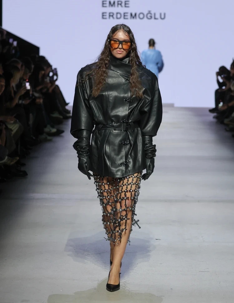 Турецкий бренд Emre Erdemo lu, не первый раз принимающий участие в Московской неделе моды, презентовал новую коллекцию, главным материалом для которой стала кожа во всевозможных проявлениях — от более привычных плащей до менее ожидаемых брючных костюмов. А открывал и закрывал показ знаменитый турецкий актер Ураз Кайгылароглу, известный в России по сериалам «Дочь посла» и «Спрячь меня».