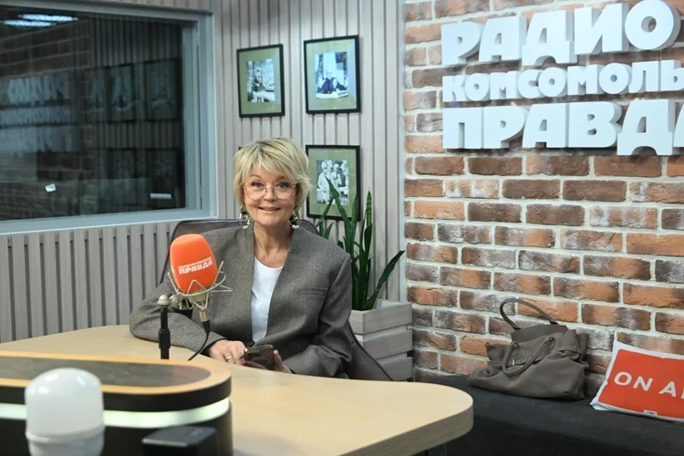 Ведущий Игорь Виттель и актриса, телеведущая Юлия Меньшова на радиостанции "Комсомольская правда"