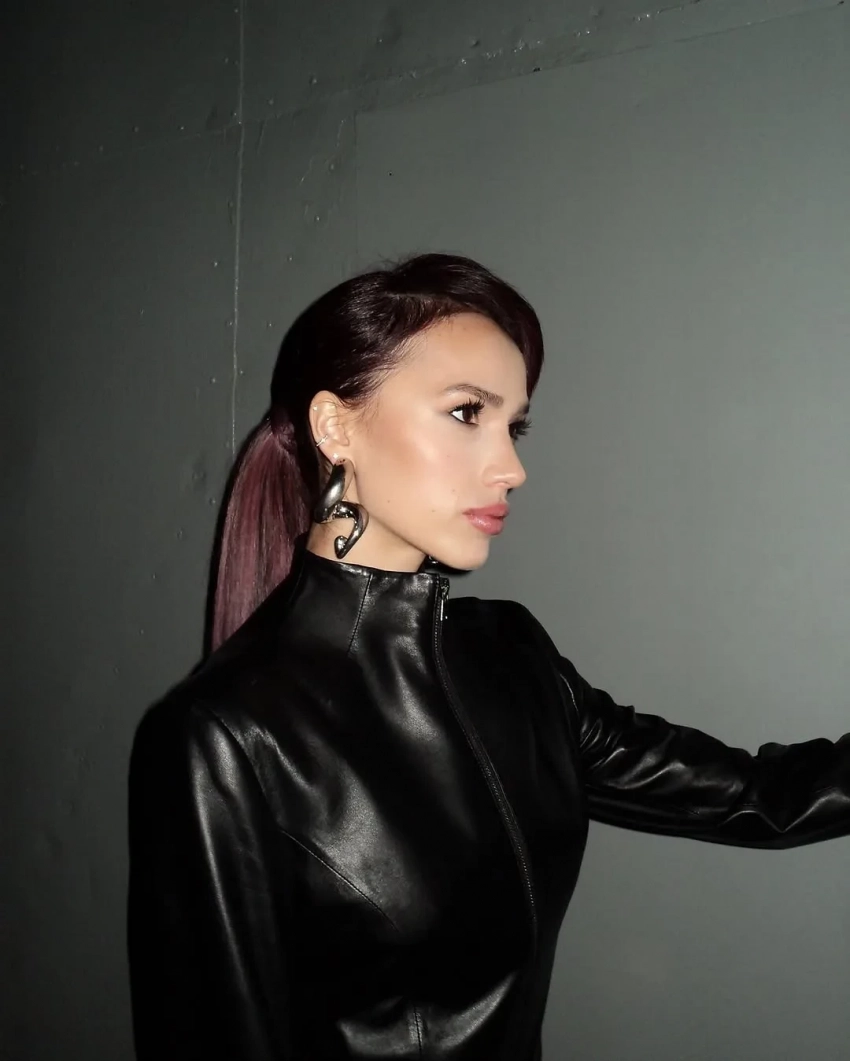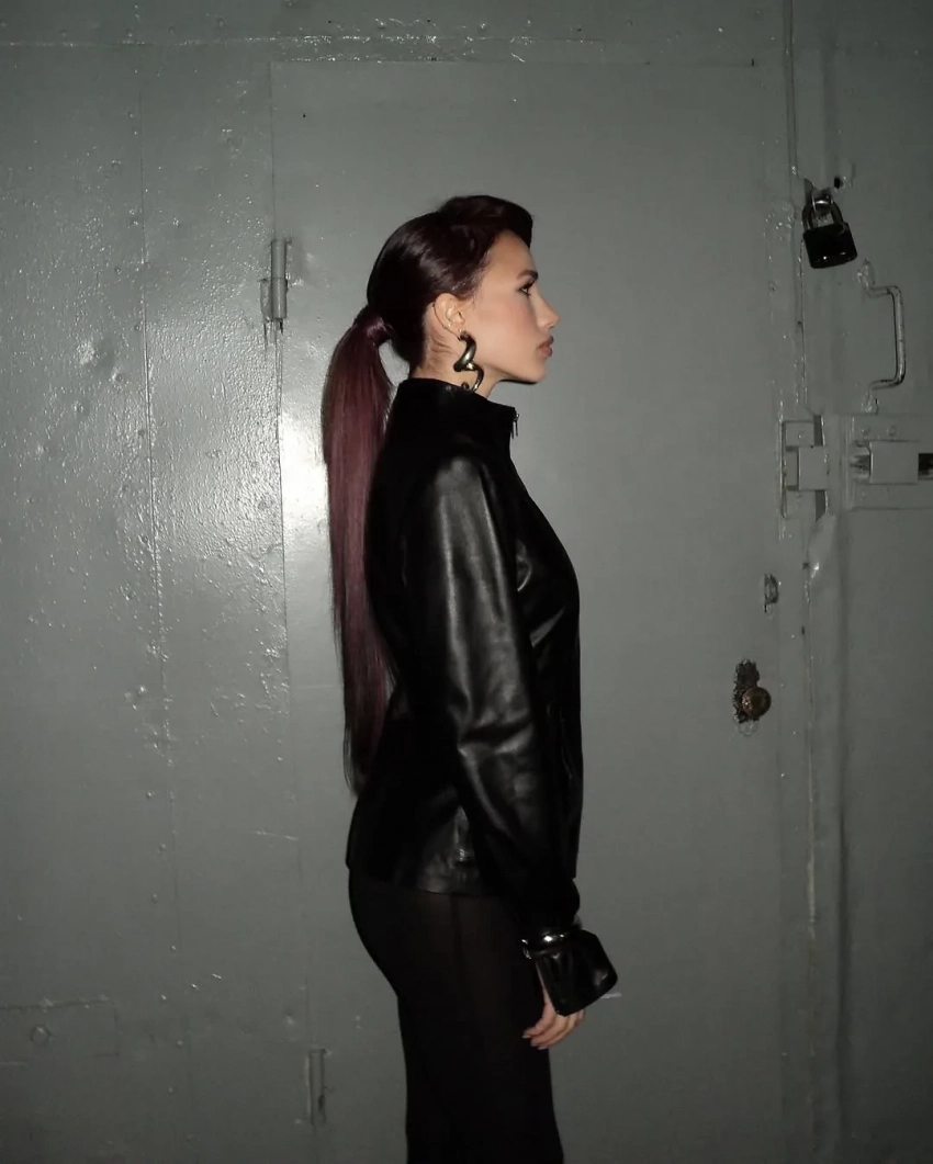 На фото Загитова предстала в кожаной куртке и полупрозрачных леггинсах с убранными в длинный хвост волосами. Она также выложила кадр с бэкстейджа, на котором сидит вместе с сумкой Hermes.