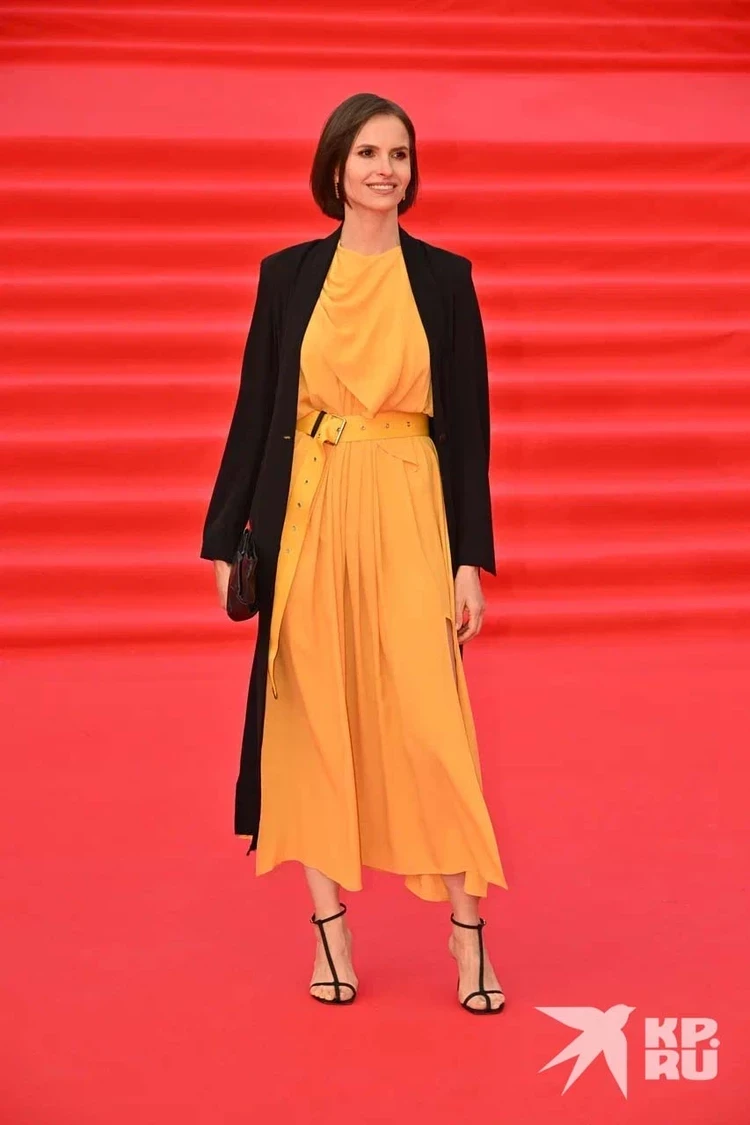 -Очень красивый образ у жены Сергея Безрукова. И платье милое и гармонично подобран к нему тренч правильной длины.
