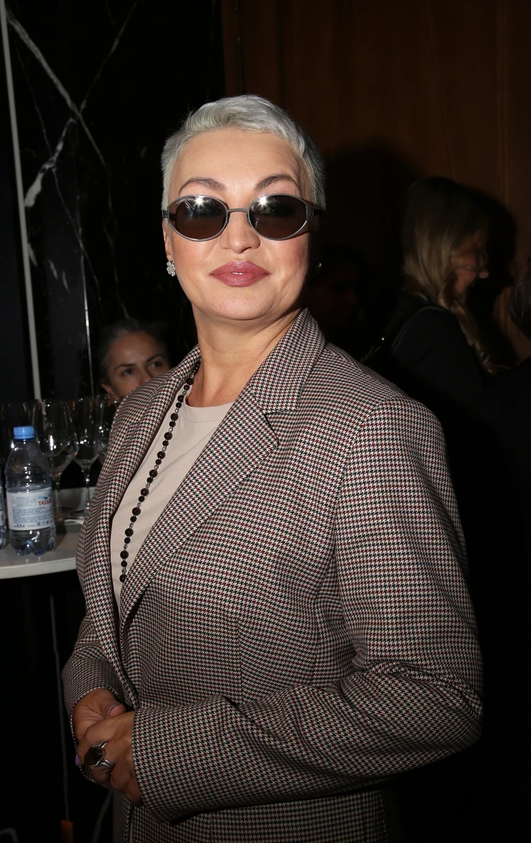 Ирина Пегова на премьере блистала в элегантном мини: актриса нарядилась серый костюм, строгость которого смягчила короткая юбка. Еще одной женственной деталью в ее образе стал ободок-кокошник с цветочным узором.