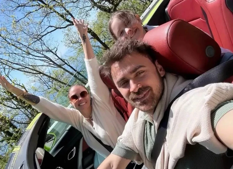 Петр Дранга и Агата Муцениеце с дочкой катаются на арендованной машине по окрестностям Ялты.