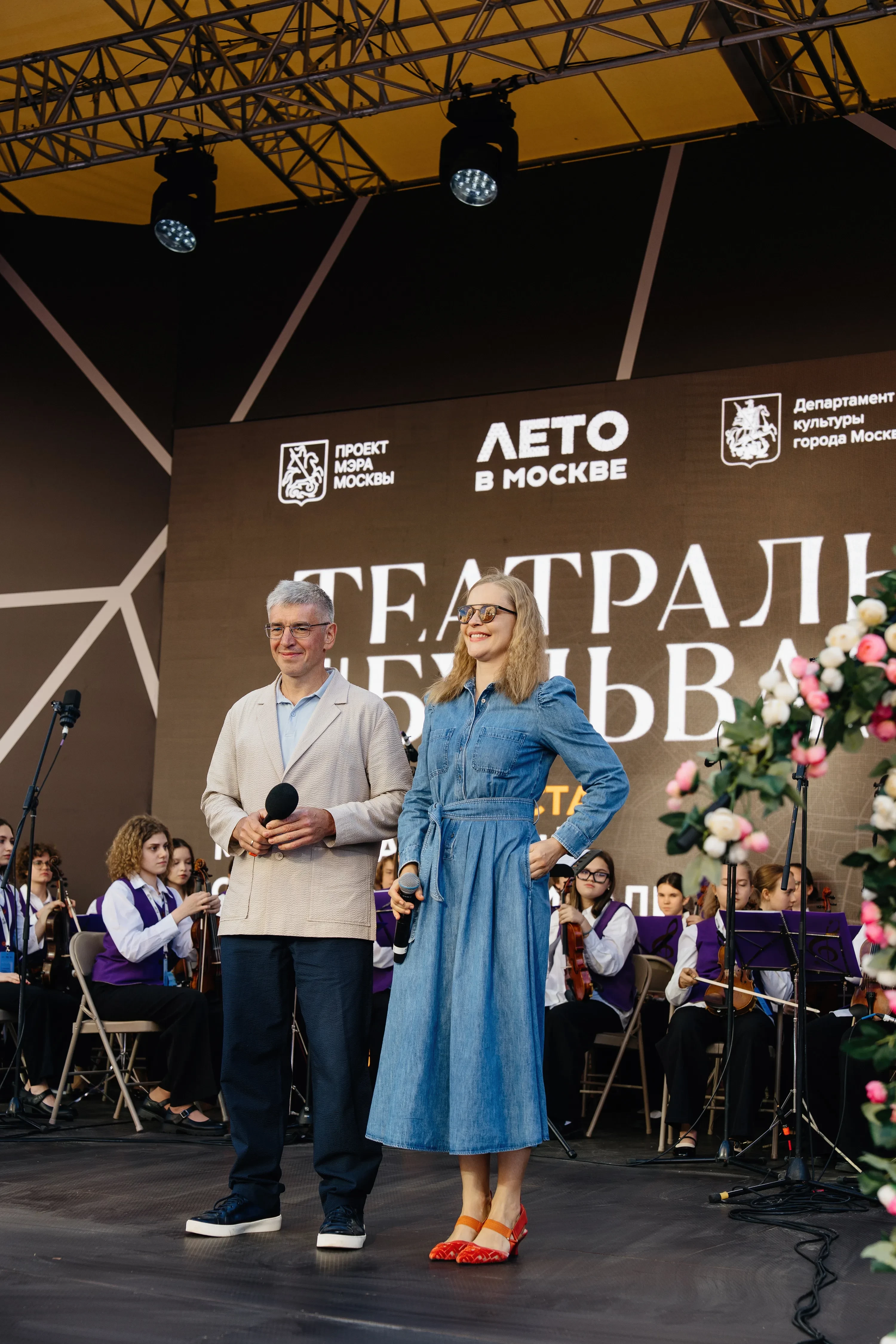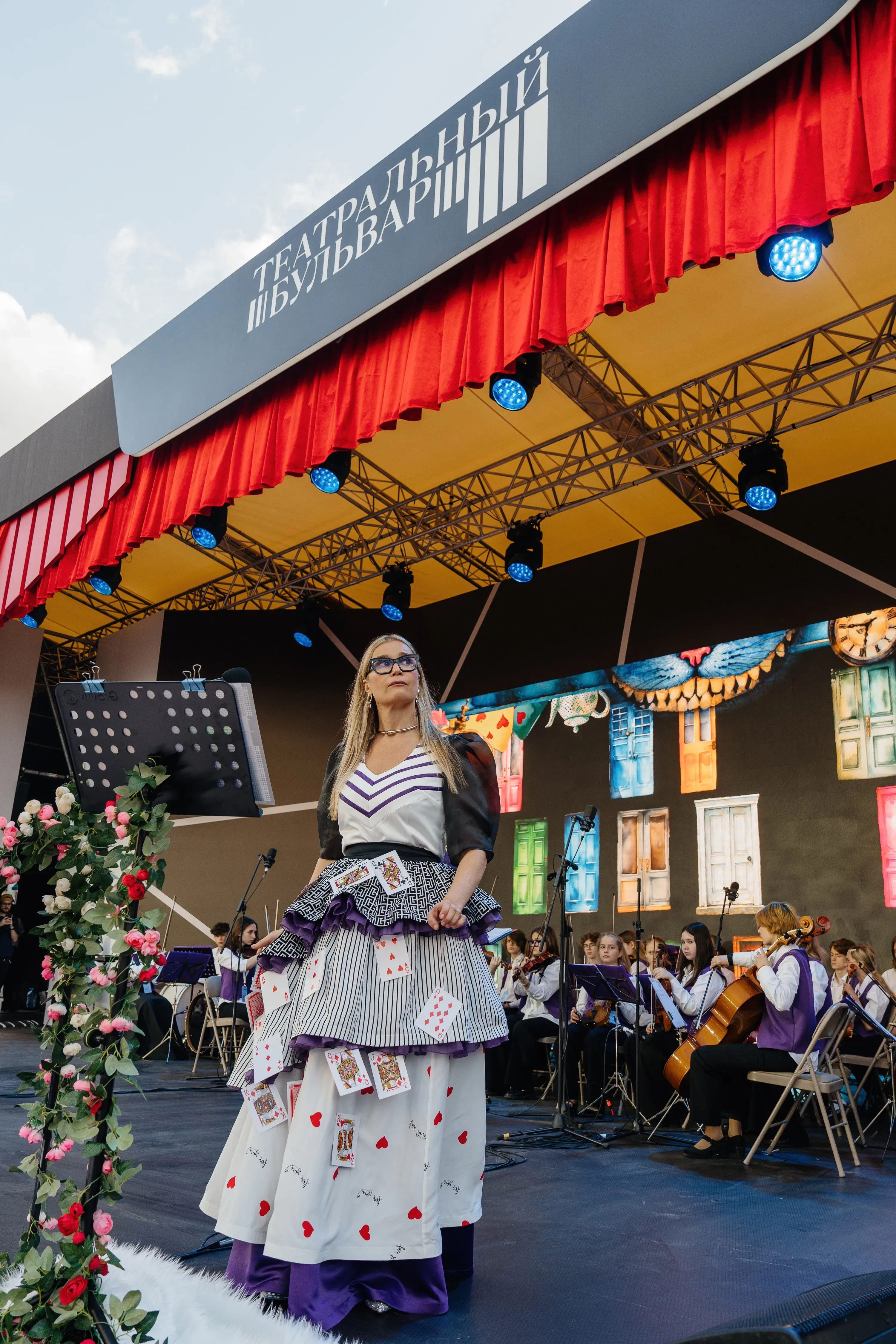 Дарья МорозКонечной точкой театрального марафона стала главная площадка фестиваля — Амфитеатр на Покровском бульваре. Здесь зрителей встречали глава столичного Департамента культуры Алексей Фурсин, а также актёры, режиссёры и руководители многих московских театров. Открылся фестиваль музыкальным спектаклем "Алиса в Стране чудес", где роль рассказчицы исполнила Кристина Бабушкина, сыгравшая в одноимённом фильме. Свою версию "Алисы" на другой площадке представила и Дарья Мороз — обе актрисы появились на мероприятии в соответствующих их героиням нарядах.