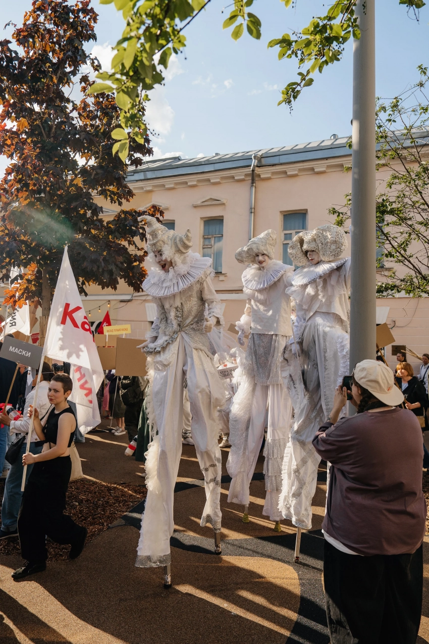 Главным событием церемонии открытия стал театрализованный марафон, который охватил почти весь центр столицы: несколько тысяч человек в костюмах и обычные москвичи с транспарантами, масками, шумелками прошли по бульварам столицы, заряжая всех атмосферой праздника.