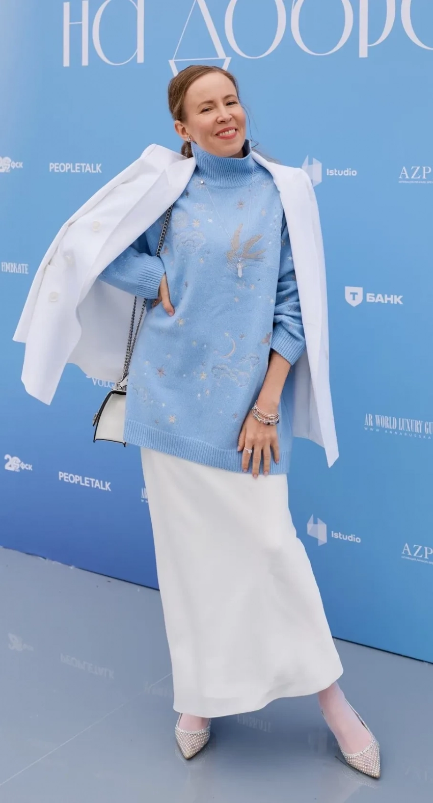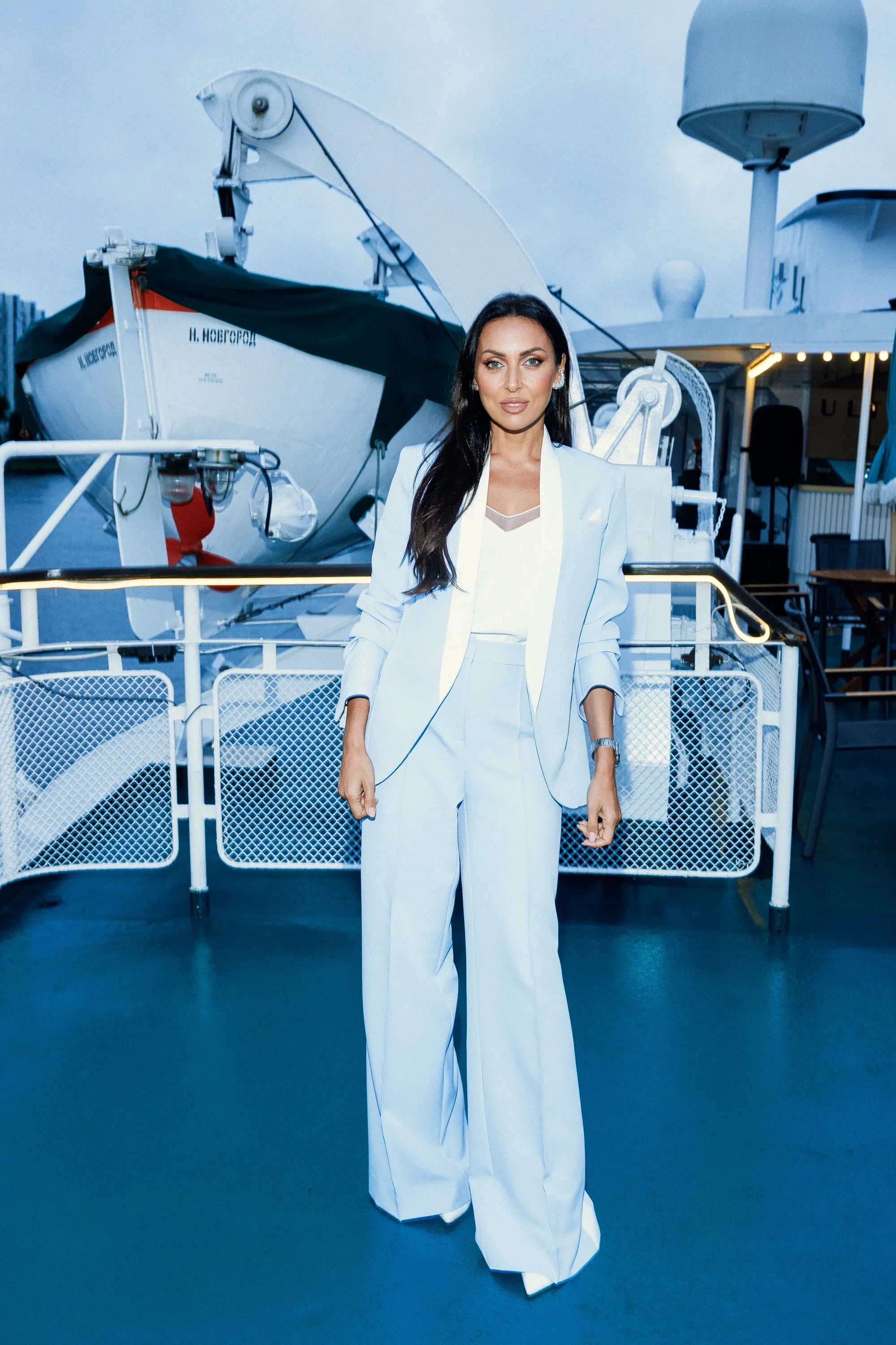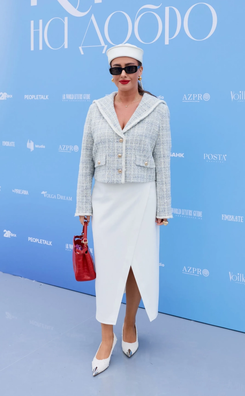 Практические все гости поддержали заявленный дресс-код и выбрали наряды в голубых и синих оттенках, отсылающих к водному формату мероприятия. 42-летняя певица Алсу выбрала для выхода в свет брючный костюм в нежно-голубой гамме, который дополнила ювелирными украшениями.