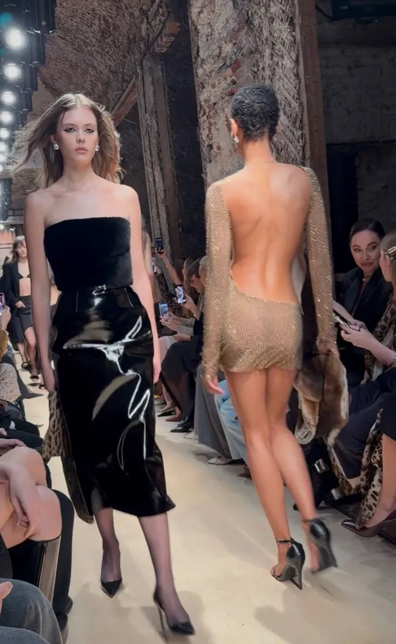 Среди гостей — представители светской и модной Москвы: Ксения Соловьева, Светлана Бондарчук, Оксана Бондаренко, Наталья Суркова, Марианна Сардарова, Александра Вертинская, Дина Хабирова, Альбина Назимова, Александр Рогов, похудевшая Ксения Собчак в архивном образе Терехова, Полина Подплетённая, инфлюенсер Дина Цай, а также глава Газпромбанка Андрей Акимов с супругой Дарьей, участвовавшей в показе, архитекторы Козин и Руэда, оформившие бутик бренда во «Временах года». За рассадкой в первом и единственном ряду отвечал Михаил Друян.