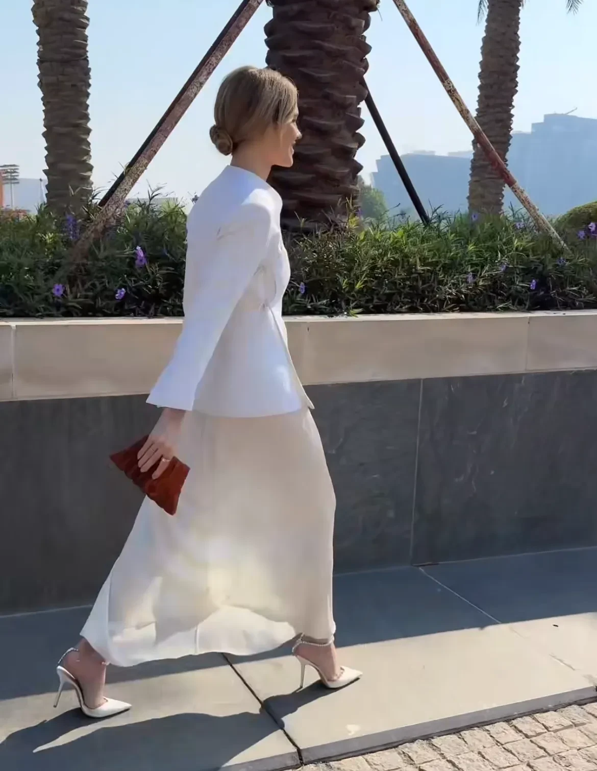 Аль-Майасса бинт Хамад Аль-Тани и Наталья ВодяноваНаталья ВодяноваАль-Майасса бинт Хамад Аль-Тани и Жизель БундхенАль-Майасса бинт Хамад Аль-Тани, Анна Винтур и гостиНа следующий день после гала-ужина Наталья посетила дневное мероприятие, куда отправилась уже в наряде total white, дополнив образ акцентным оранжевым клатчем.