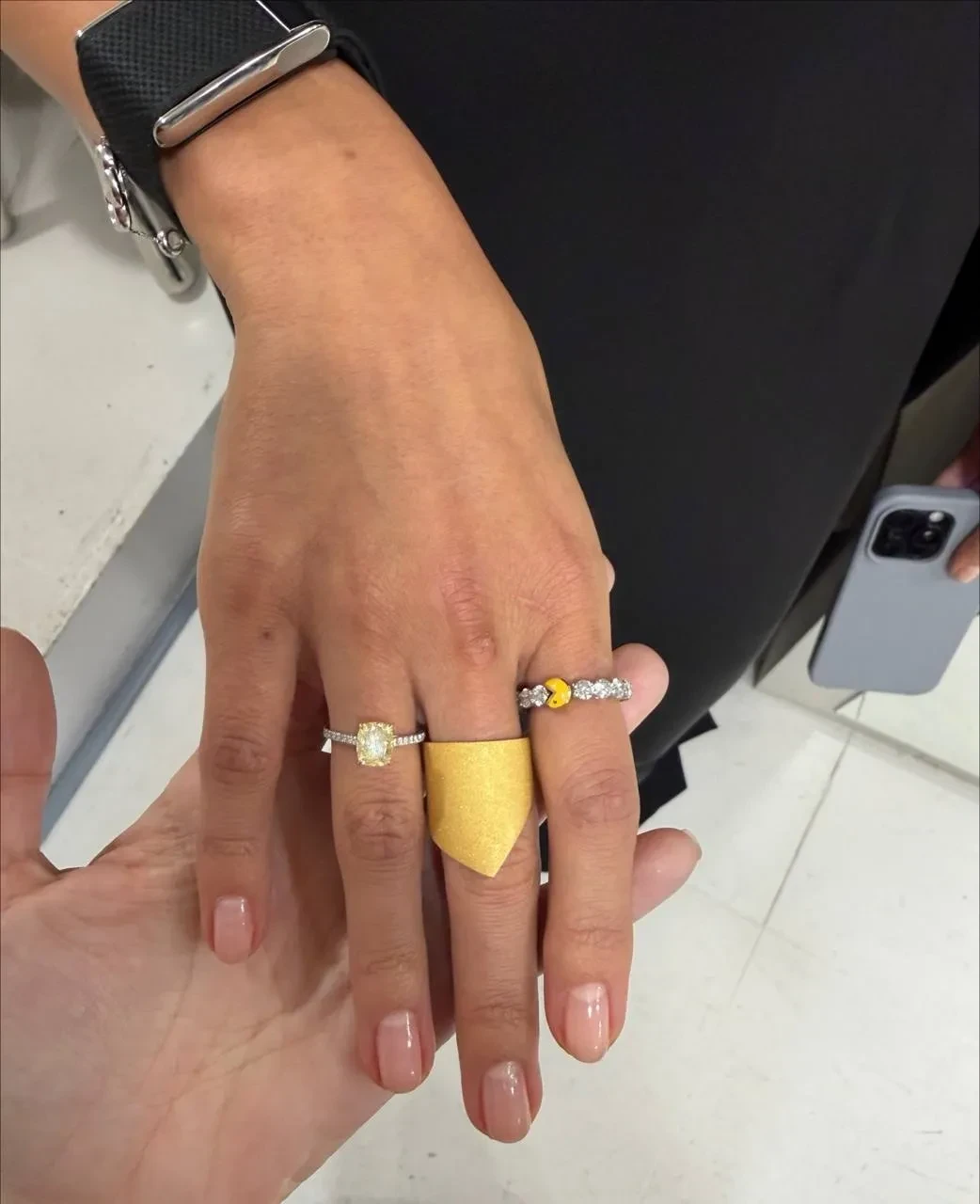 Пара расписалась в одном из московских загсов, сообщает телеграм-канал "Светские крошки". Жених надел на безымянный палец невесты кольцо с бриллиантом цвета "шампань".