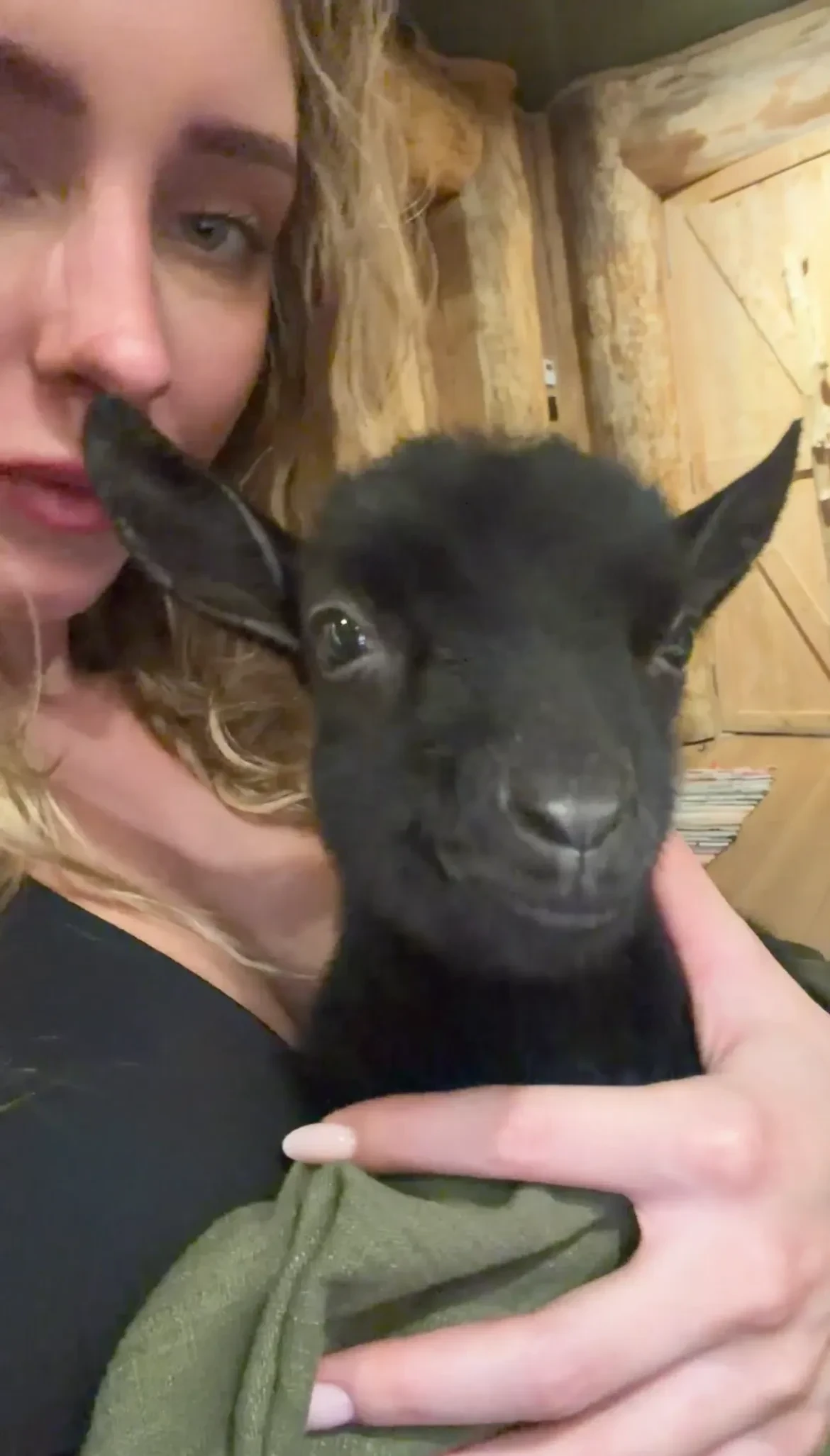 Вавилова опубликовала видео с чёрным трёхмесячным козлёнком и рассказала, что теперь он будет жить с ними. "У нас появился новый питомец! И это не собака, не кошка. Даже не хомячок. Это мини-козлёнок. Его зовут Тонски, ему три месяца".