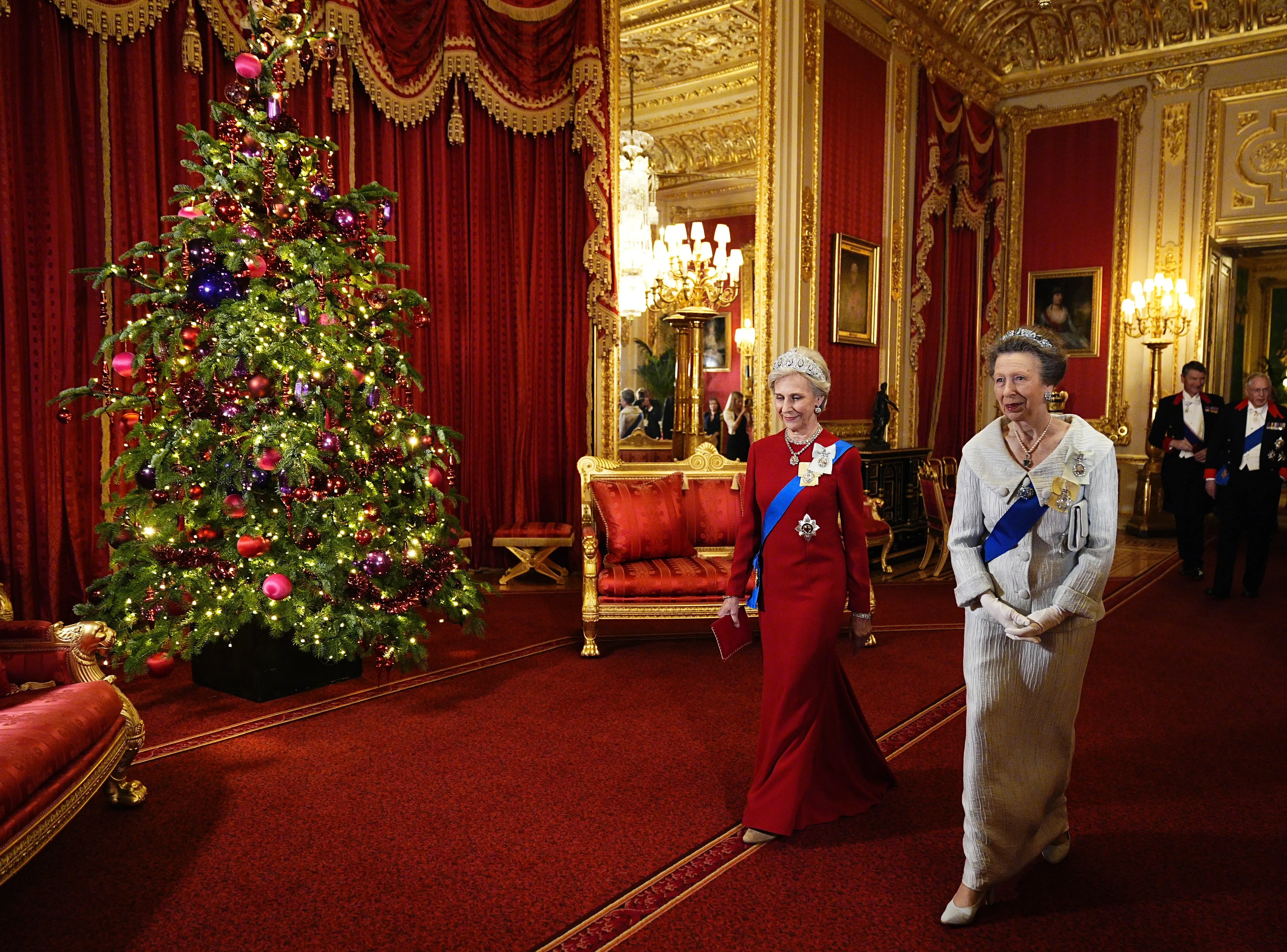 Кейт Миддлтон в редкой тиаре, принц Уильям, Клаудия Шиффер, король Карл III и королева Камилла на банкете в Виндзоре