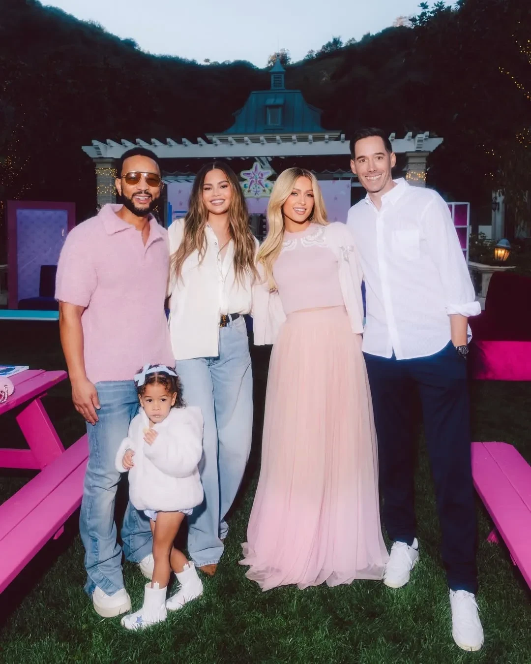 Пэрис Хилтон с мужем, Крисси Тейген и Джоном Леджендом с их дочерью