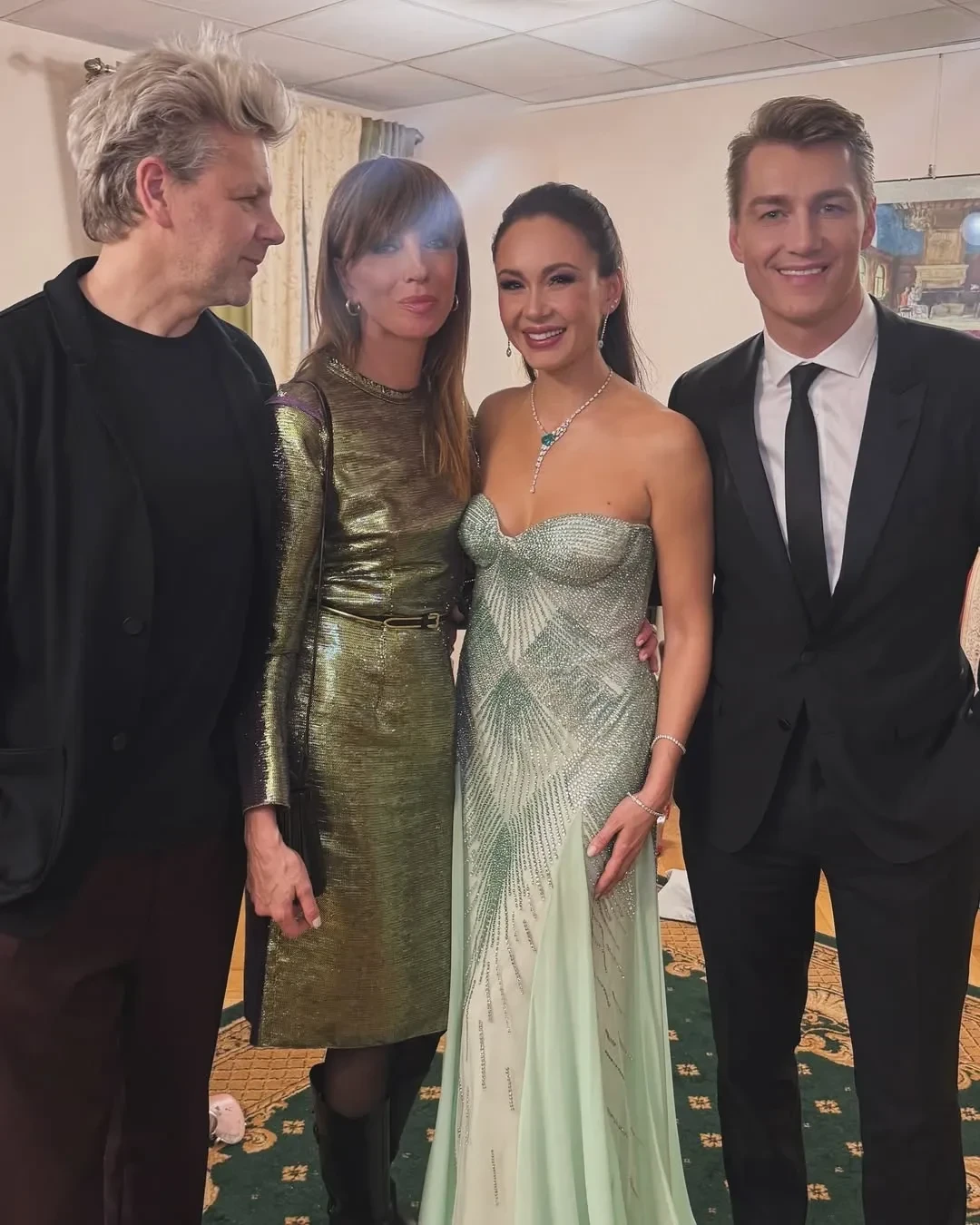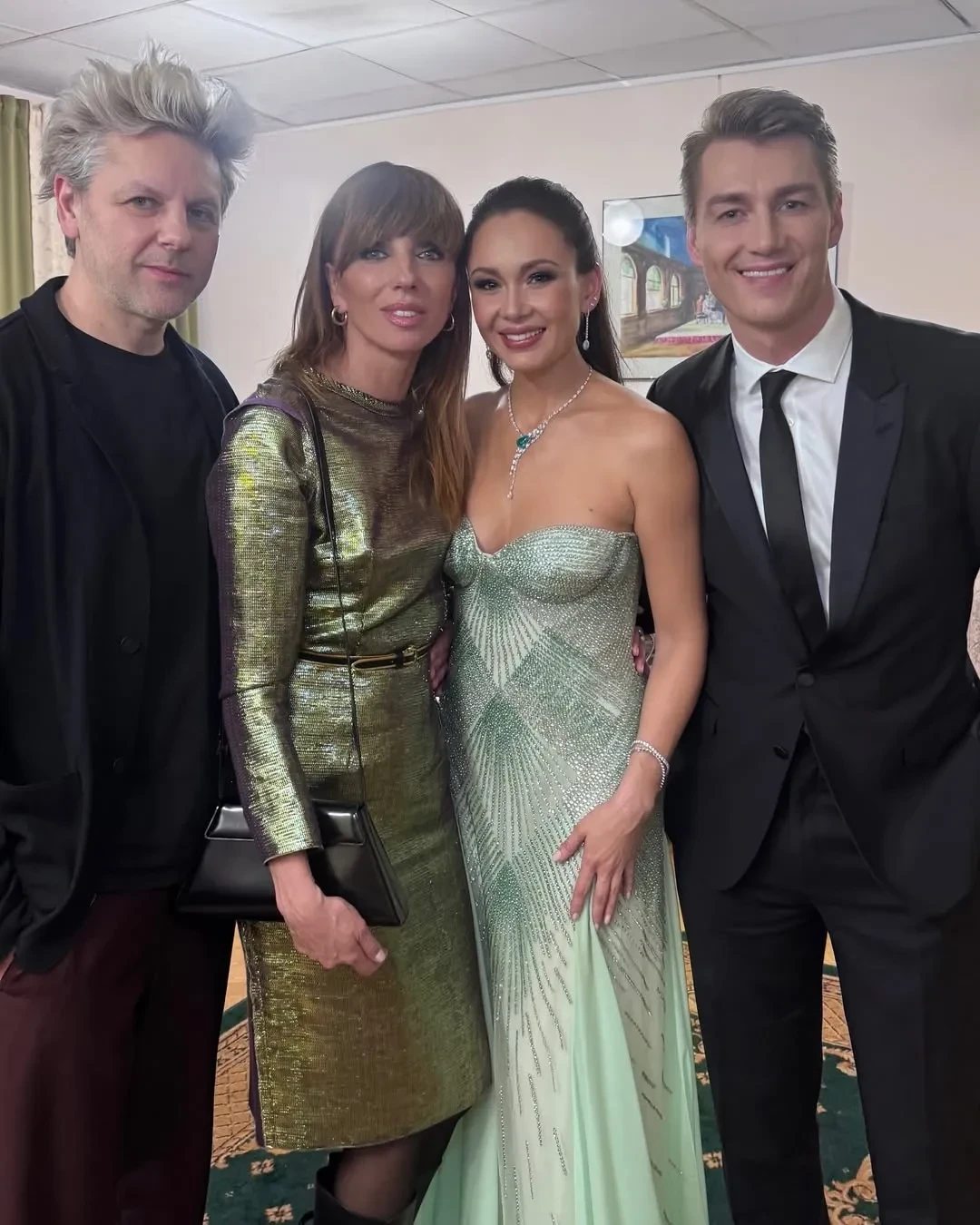 56-летняя Светлана Бондарчук опубликовала в соцсетях закулисное фото со своим мужем, Гарифуллиной и Воробьёвым. Она призналась, что благодаря шоу "наконец почувствовала предновогоднее настроение" и назвала певицу "нереальной". На концерт Бондарчук пришла в золотистом платье и с новой причёской: она подстригла чёлку.