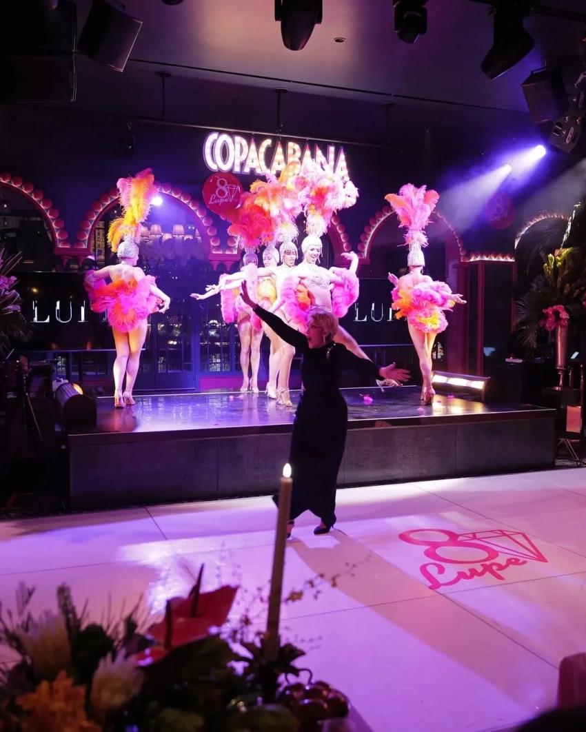 Вечеринка прошла в ночном клубе Лас-Вегаса — "любимого места на земле" Гваделупе Родригес, как выразилась 56-летняя певица в посте, в котором поздравила мать с днём рождения. Макс и Эмма поздравили бабушку, выступив со стендапом, на сцене выступало кабаре-шоу.