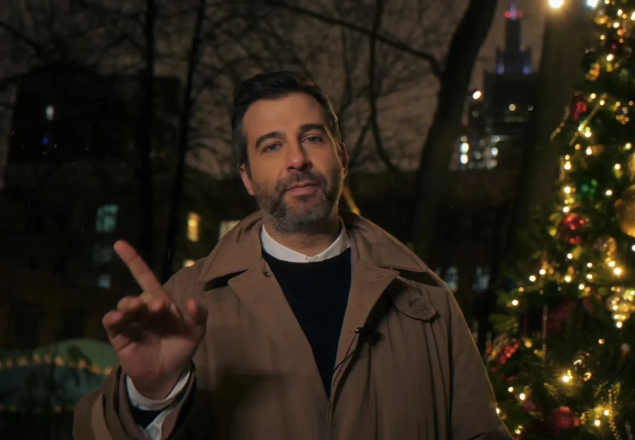 Сам ролик начинается с видов зимней Москвы, а затем в кадре рядом с наряженной ёлкой появляется Ургант. Рассказывая о своём новом проекте, Ургант поиронизировал над тем, что времена его работы на Первом канале с шоу "Вечерний Ургант" прошли: "Всё как обычно сделали: поставили жидко-кристаллические экраны, декорации, оркестр… Два хора, детский и взрослый. Зрителей 700 человек. Всё! 15 камер, съёмка началась, я выхожу и вдруг: стоп, не то", — пошутил Ургант, имея в виду, что такой масштаб теперь ему недоступен.