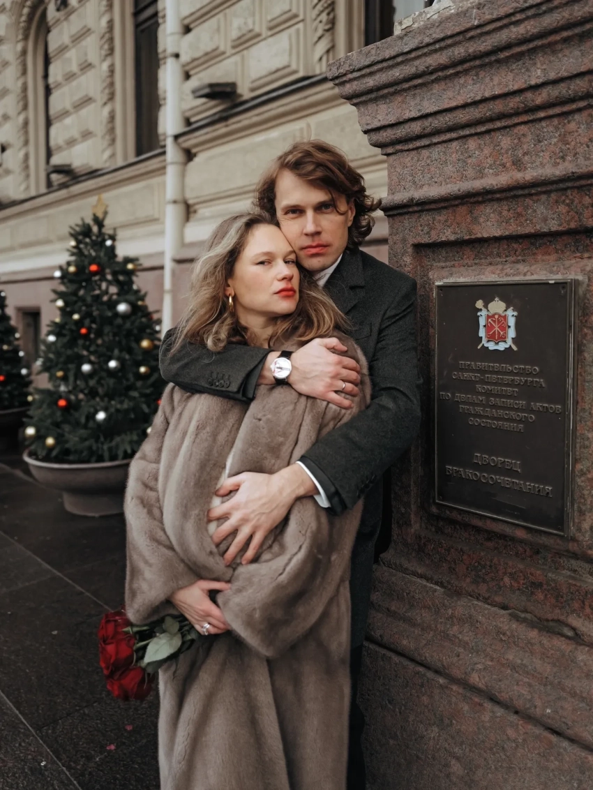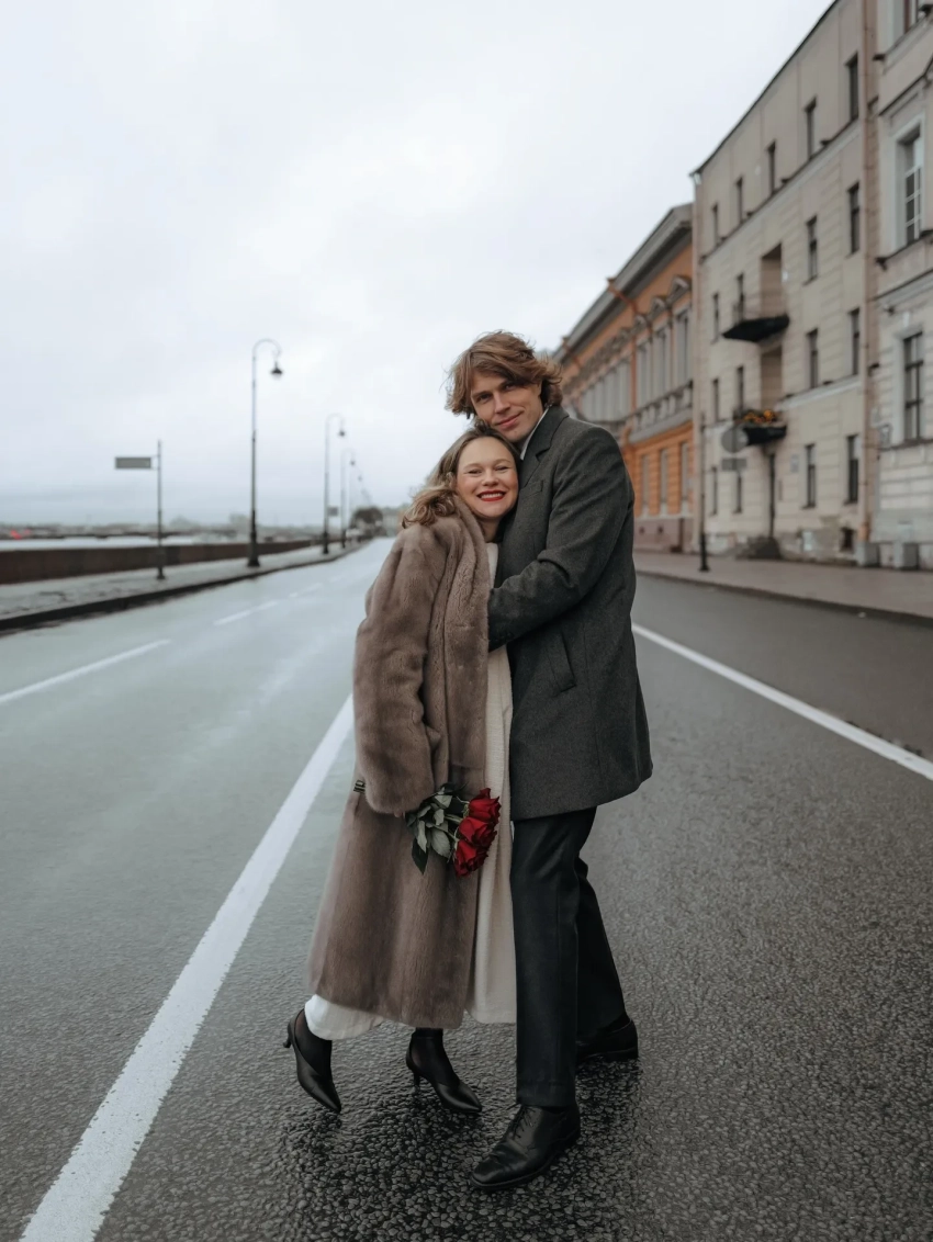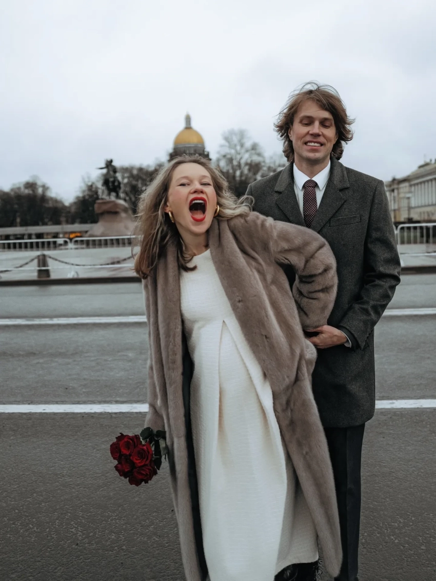 Пара расписалась в Дворце бракосочетания № 1 в Санкт-Петербурге. Невеста была в белом платье с вафельной текстурой, чёрных ботильонах и шубе, а жених — в сером костюме с удлинённым пиджаком. "В этом году я успела всё!" — подписала публикацию Янковская.