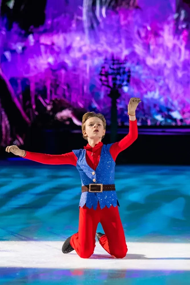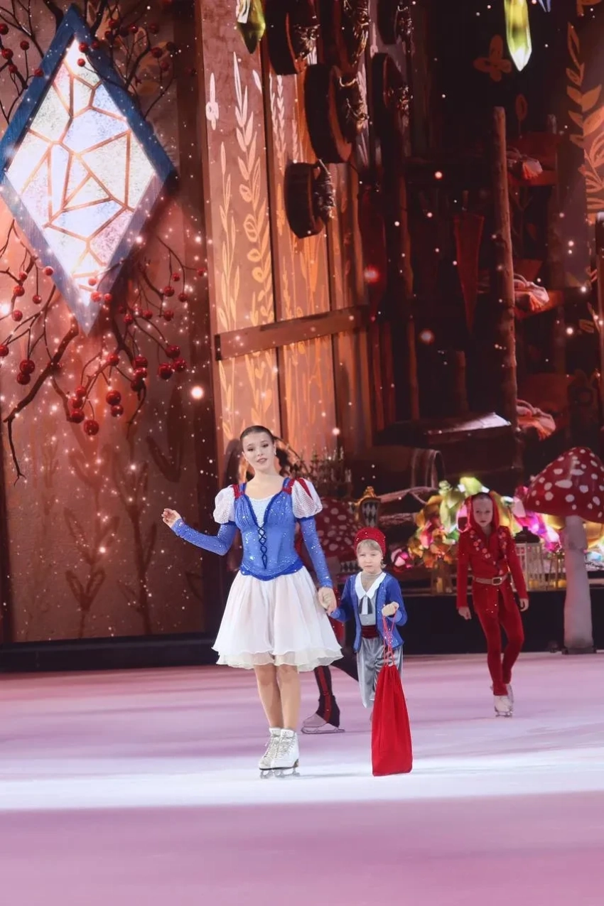 Лера Кудрявцева с дочерьюНа лёд вышли оба сына Рудковской и Плющенко — Александр и Арсений. В постановке приняли участие олимпийская чемпионка Анна Щербакова (Белоснежка), чемпион Европы Дмитрий Алиев (Принц).