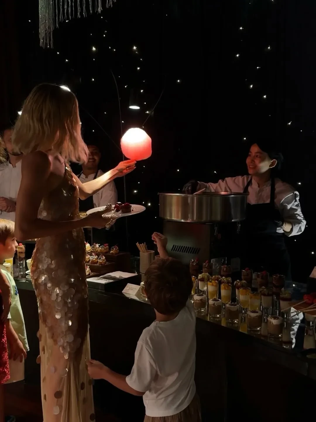 "Наш Новогодний вечер в самом волшебном месте", — написала Елена Перминова. В новогоднюю ночь она выгуляла два образа: платье с золотыми пайетками и прозрачной юбкой и голубое платье с вырезом на бедре. 11-летняя дочь Перминовой Арина уже примеряет наряды матери: она позировала на празднике в красном платье, в котором Елена отмечала свой день рождения в Венеции.