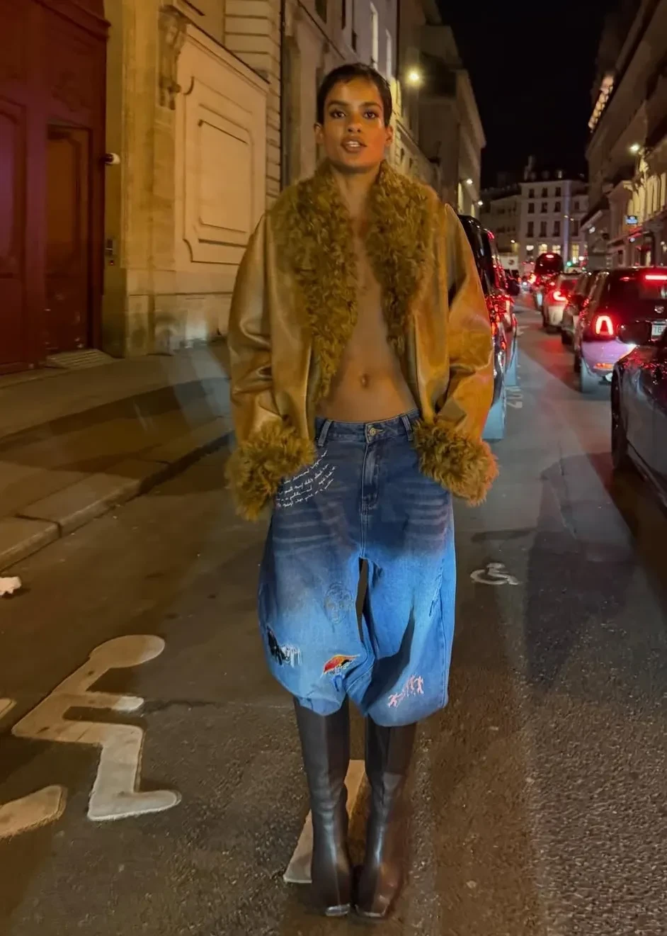 Венсан Кассель и Нара Баптиста (в дублёнке на голое тело) вышли в свет в Париже