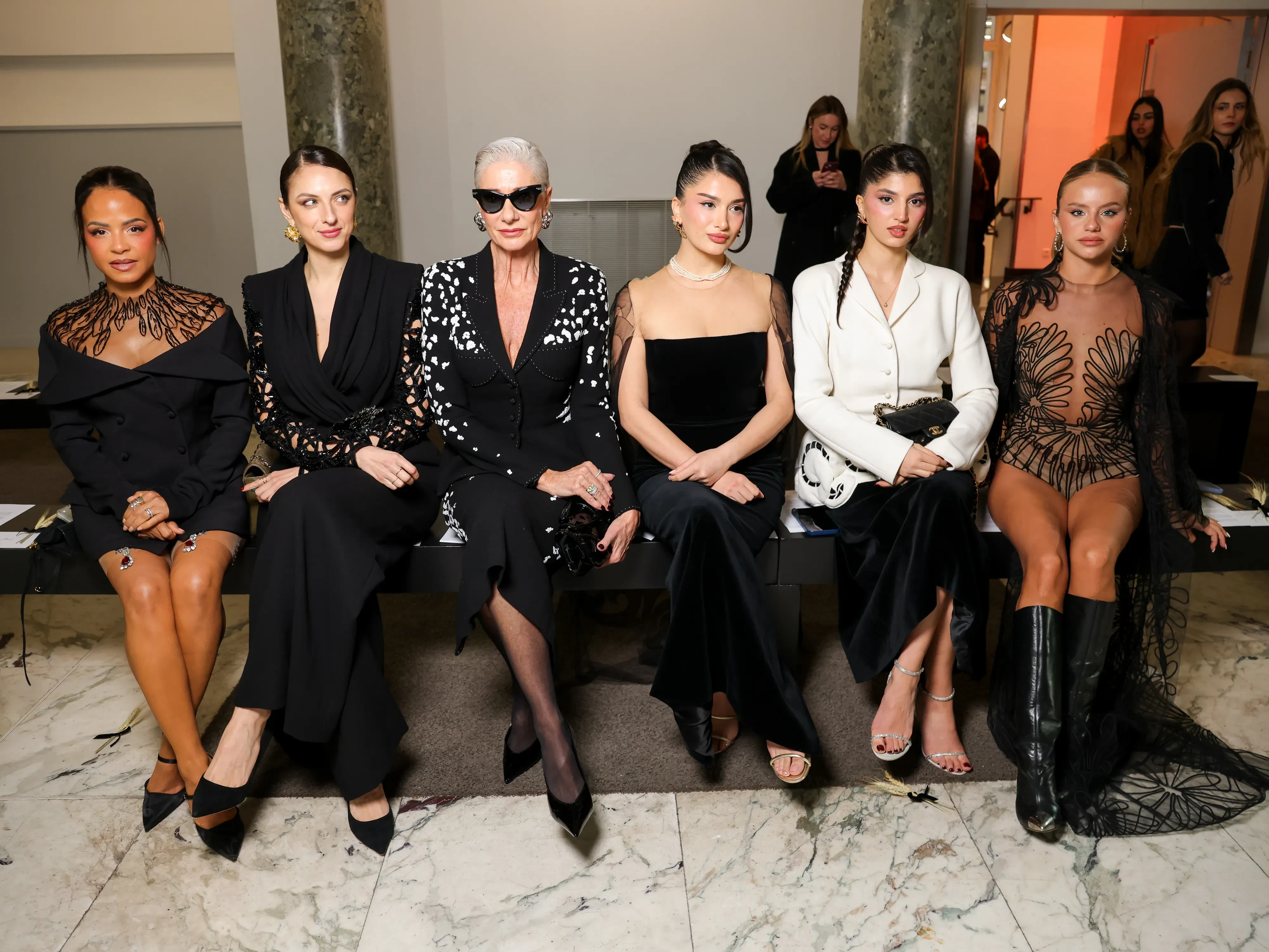54-летняя оперная дива Анна Нетребко пришла в чёрном платье, а Екатерина Мухина и Оксана Бондаренко надели кожаные пальто. Стилист и судья шоу "Модный приговор" Лилия Рах позировала в тотал-луке Thom Browne, а 34-летняя Таня Дягилева примерила юбку с пайетками на низкой посадке с топом из кристаллов.