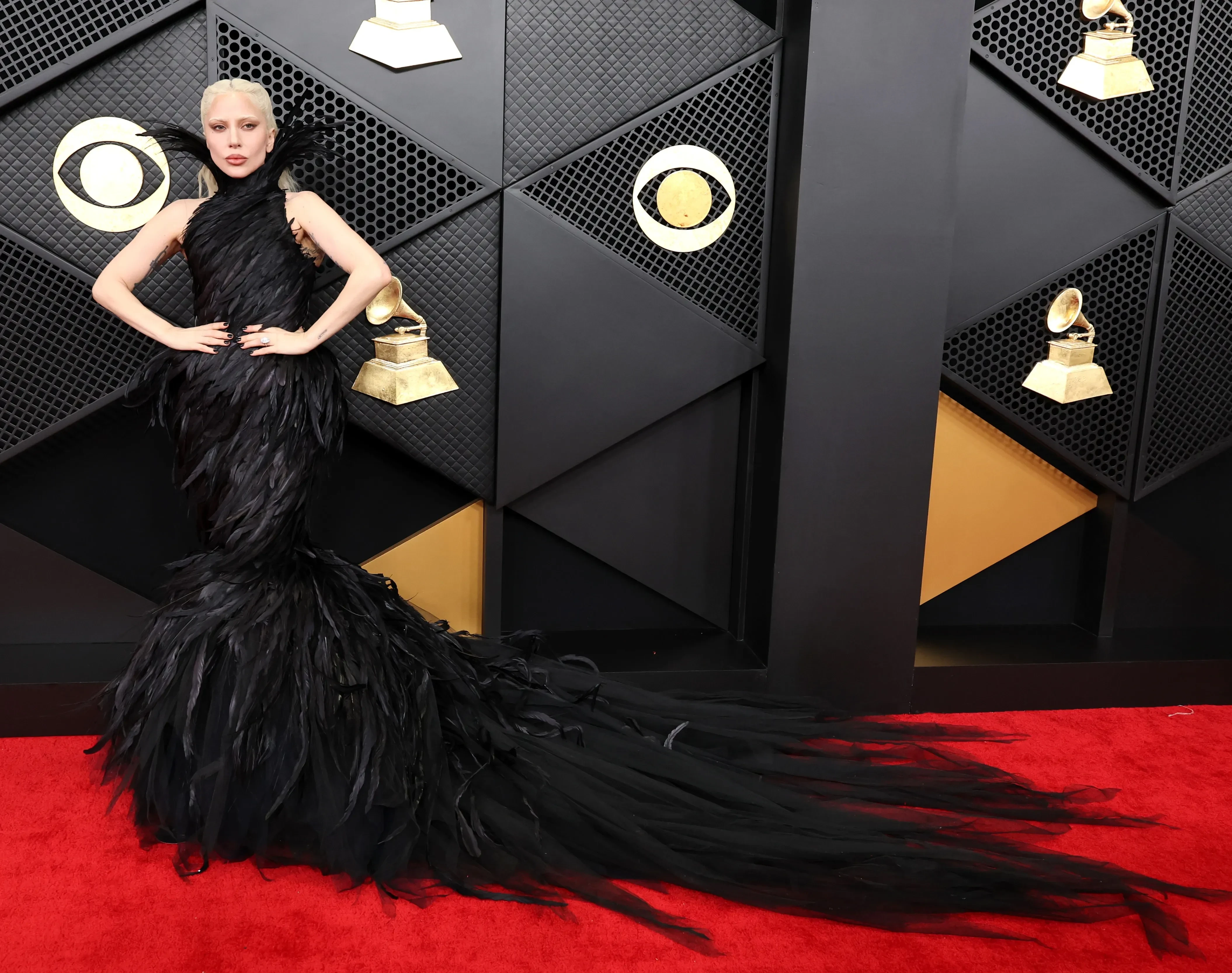 Леди Гага, Джастин и Хейли Бибер, Майли Сайрус, Шер и Хайди Клум в "голом" платье посетили премию "Грэмми"