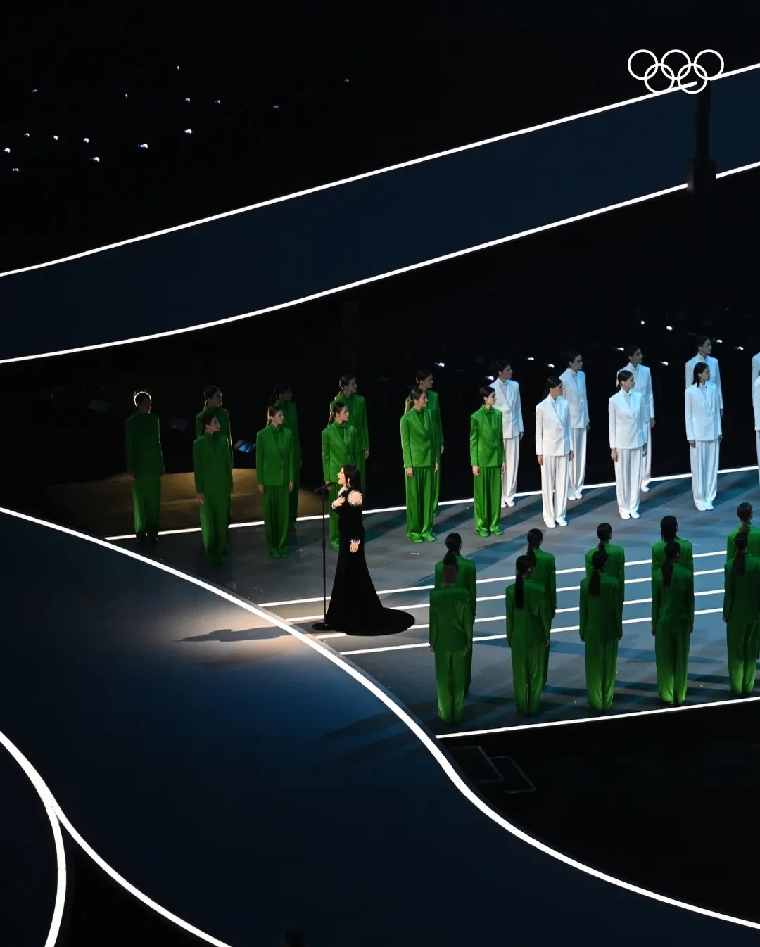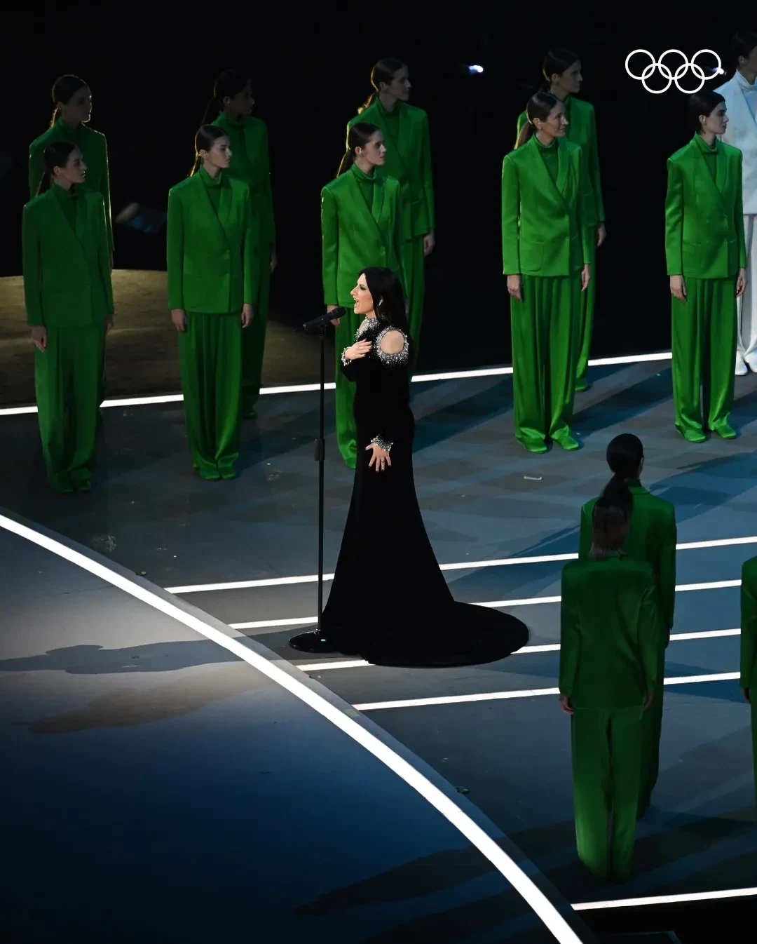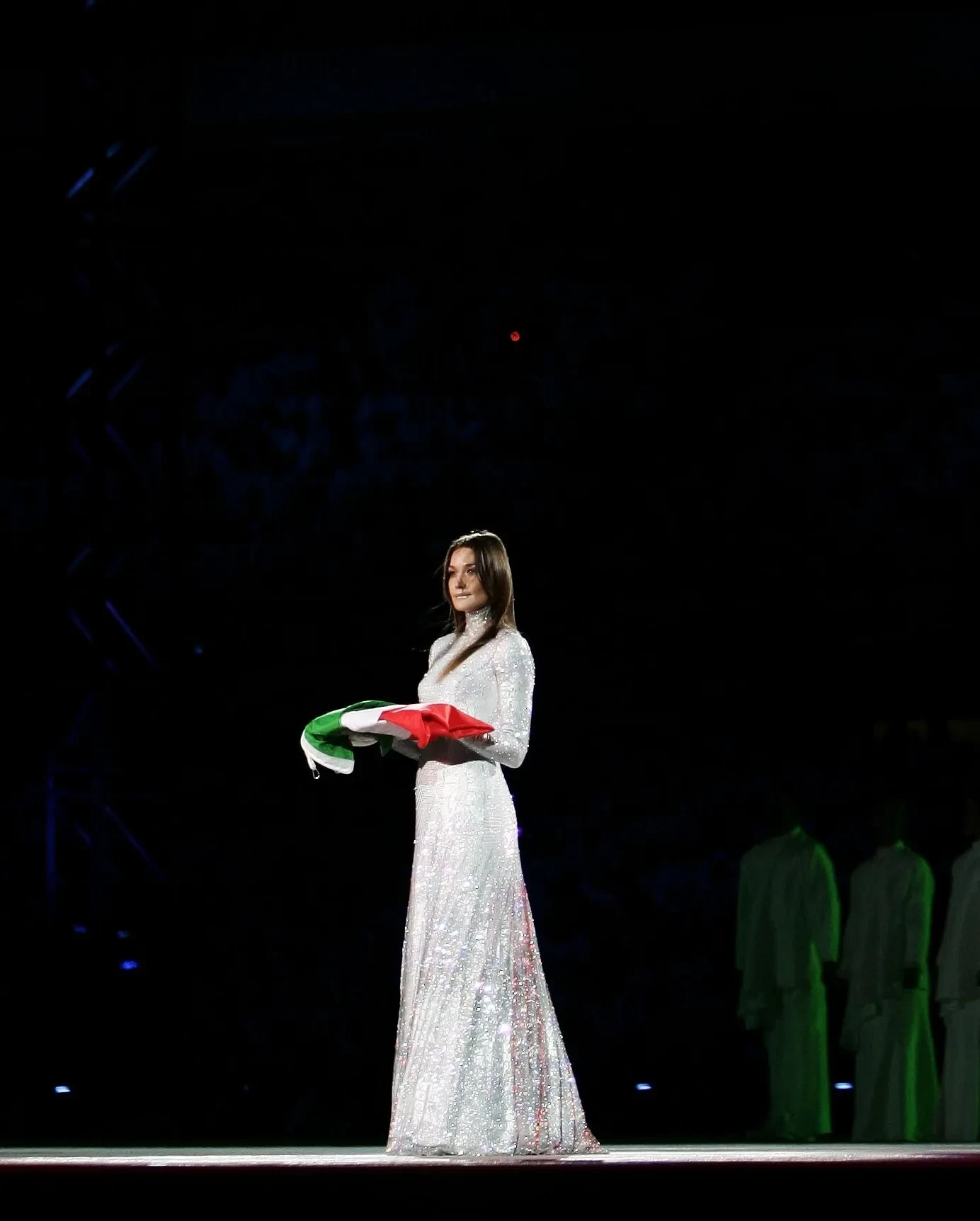 Затем прозвучал гимн страны. Певица Лаура Паузини исполнила его в сопровождении горного хора из Кортина-д’Ампеццо.