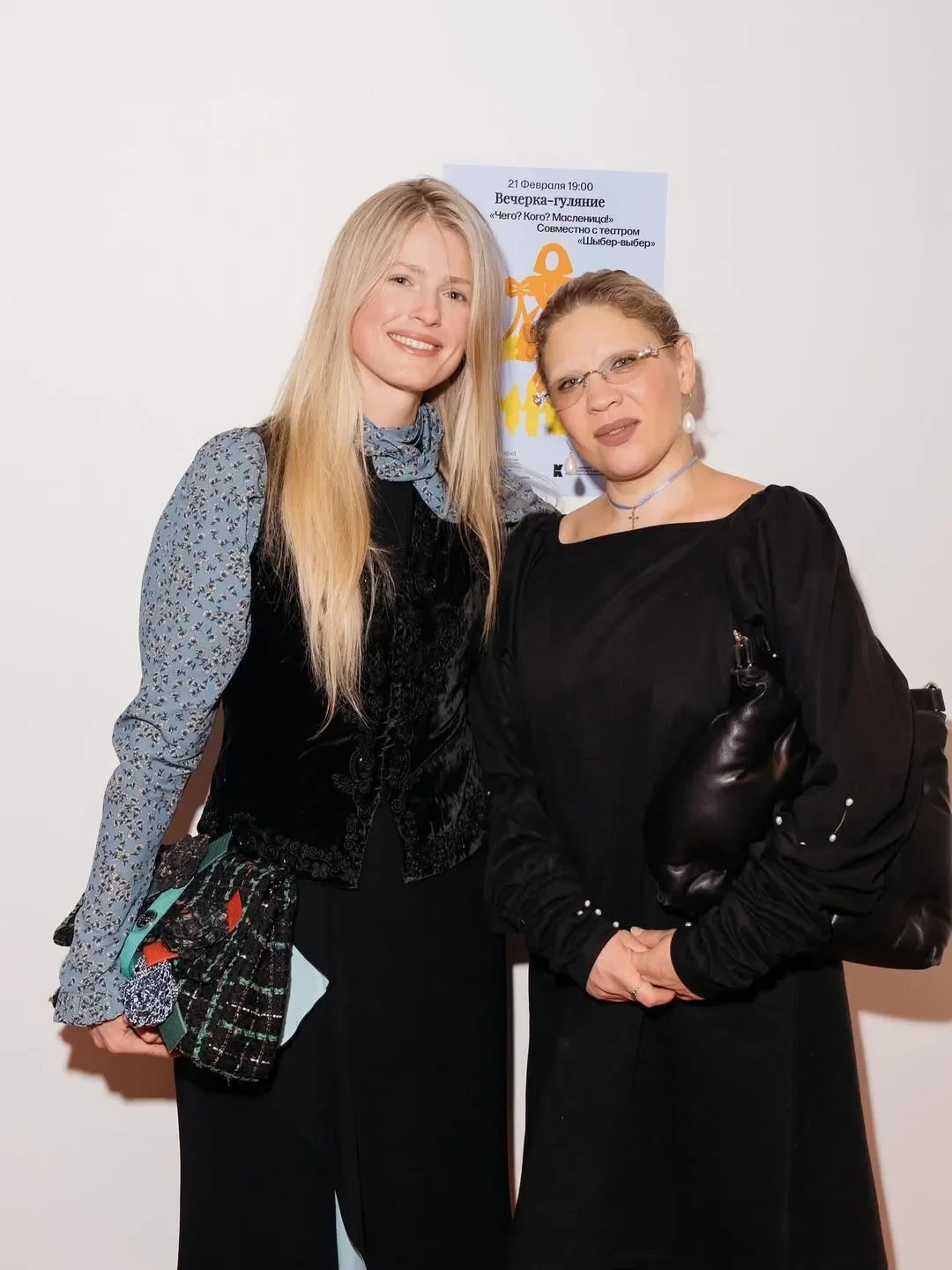 37-летняя актриса провела вечер с артистами Дома культуры, а среди гостей были Прохор Шаляпин, певица Тина Кузнецова и другие. Эрнст появилась на публике в длинной чёрной юбке, блузе с цветочным принтом и жилете.