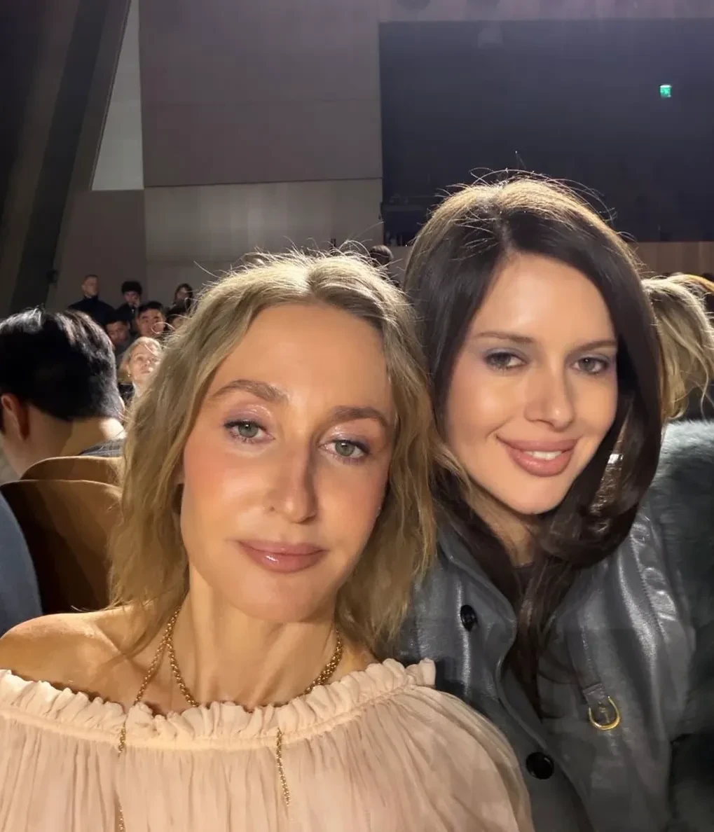 44-летняя супермодель Наталья Водянова пришла на показ в фиолетовом мини-платье, а 60-летняя Брук Шилдс и дочь Майкла Джексона Пэрис надели одинаковые образы разных оттенков. Звезда "Белого лотоса" Эйми Лу Вуд позировала в кожаном плаще, а Оксана Бондаренко примерила блузу и длинную юбку с рюшами. Ксения Шипилова пришла в мини-юбке, а актриса Нина Добрев надела платье с цветочным принтом.