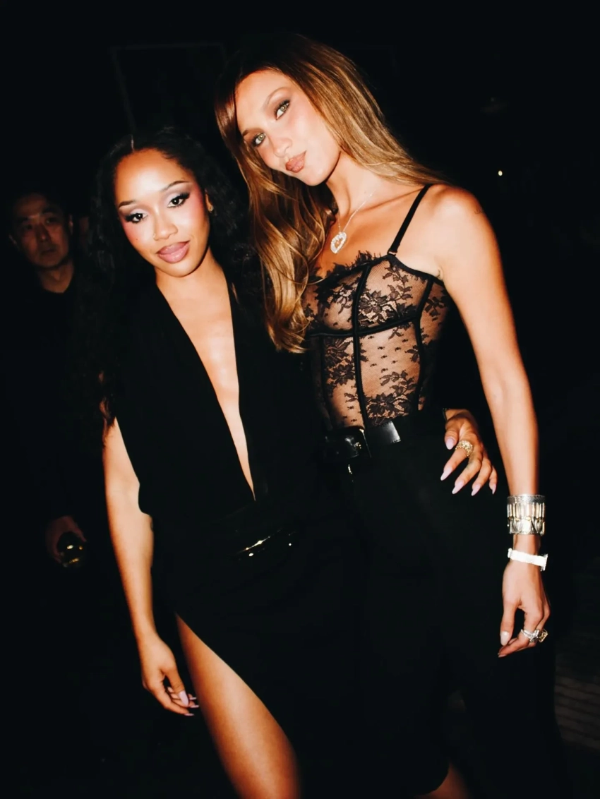 Белла Хадид в кружевном "голом" топе повеселилась на вечеринке в Лос-Анджелесе