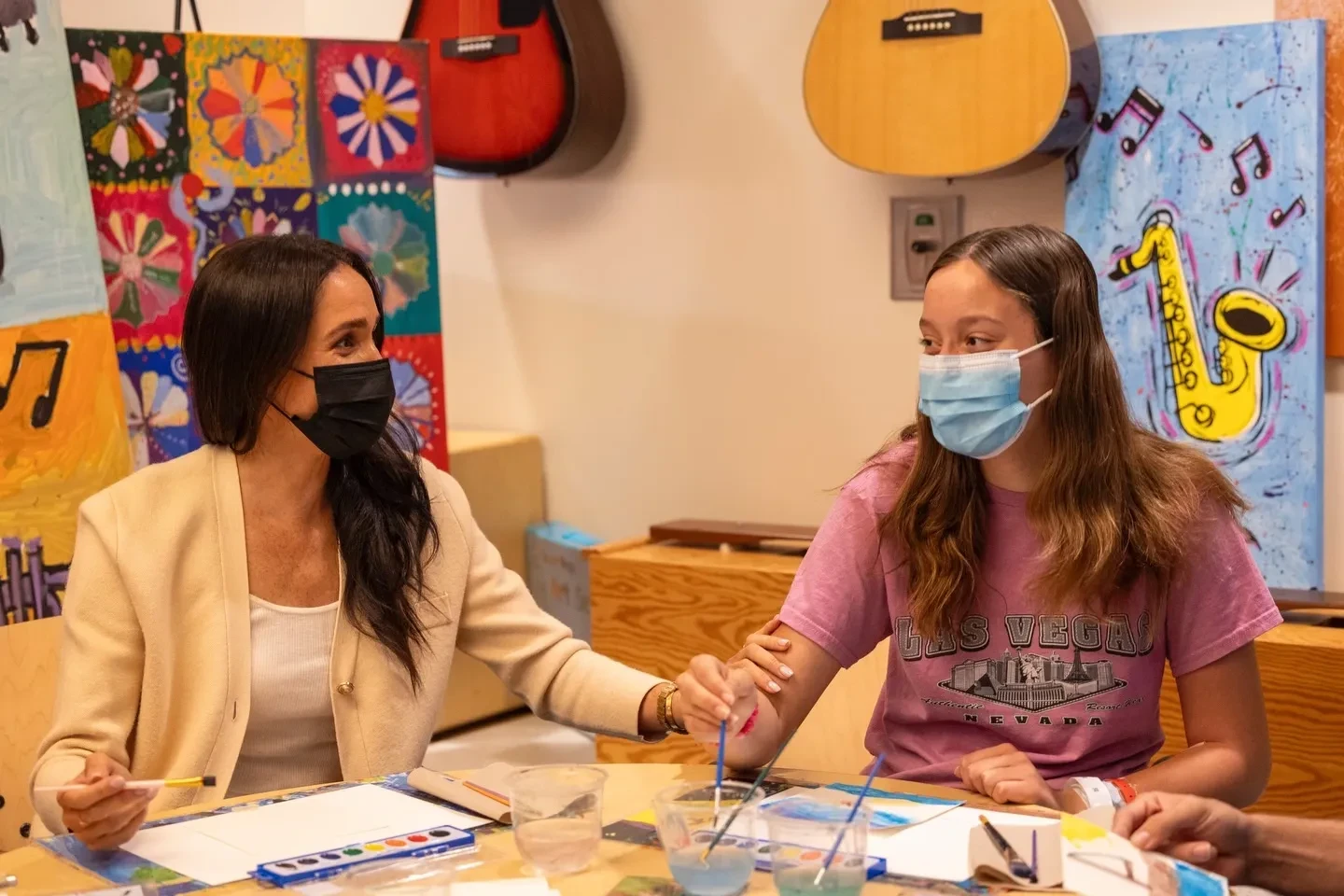 44-летняя герцогиня Сассекская пришла в больницу в белых брюках, майке того же цвета и бежевом кардигане. Образ завершал её любимый браслет Cartier Love и золотые часы, некогда принадлежавшие принцессе Диане. Сначала Маркл посетила зону "Творческий оазис", где вместе с детьми порисовала акварелью, а затем пообщалась с лежачими пациентами, которые не могли выйти из своих палат, чтобы принять участие в интерактиве.