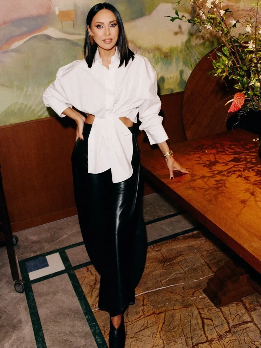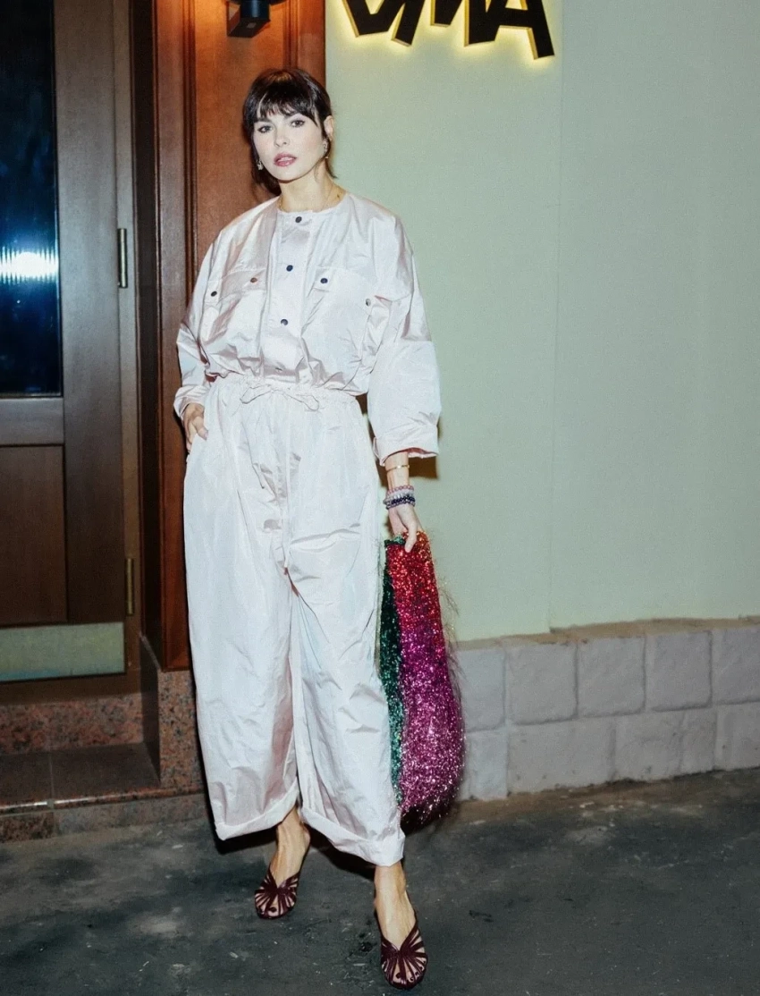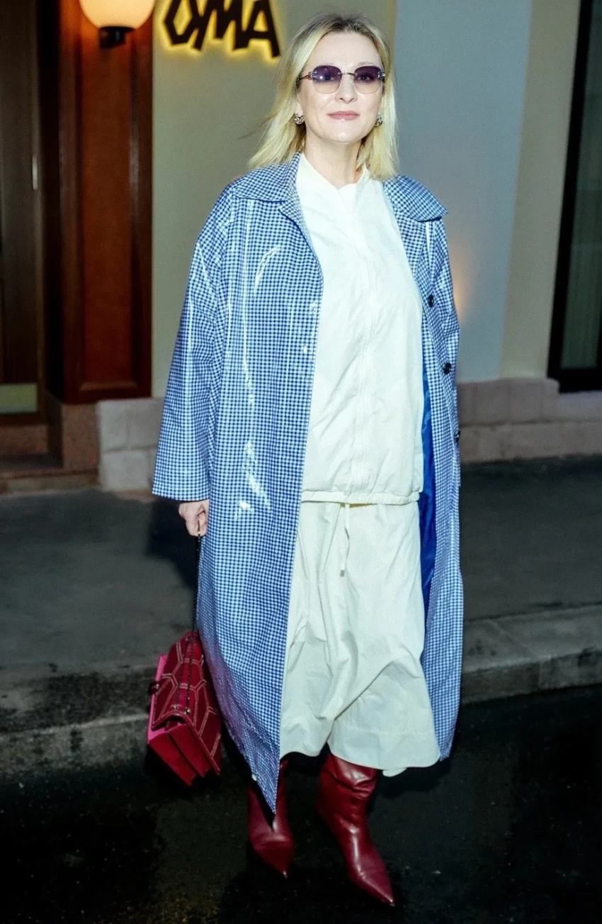 42-летняя певица Алсу появилась на мероприятии с новой стрижкой, в кожаной юбке и белой блузе, а 64-летняя Сати Спивакова позировала в синем тренче с сумкой Hermes. Мария Миногарова надела платье с высоким разрезом, а Оксана Рим позировала в кейпе The Row и туфлях Saint Laurent.