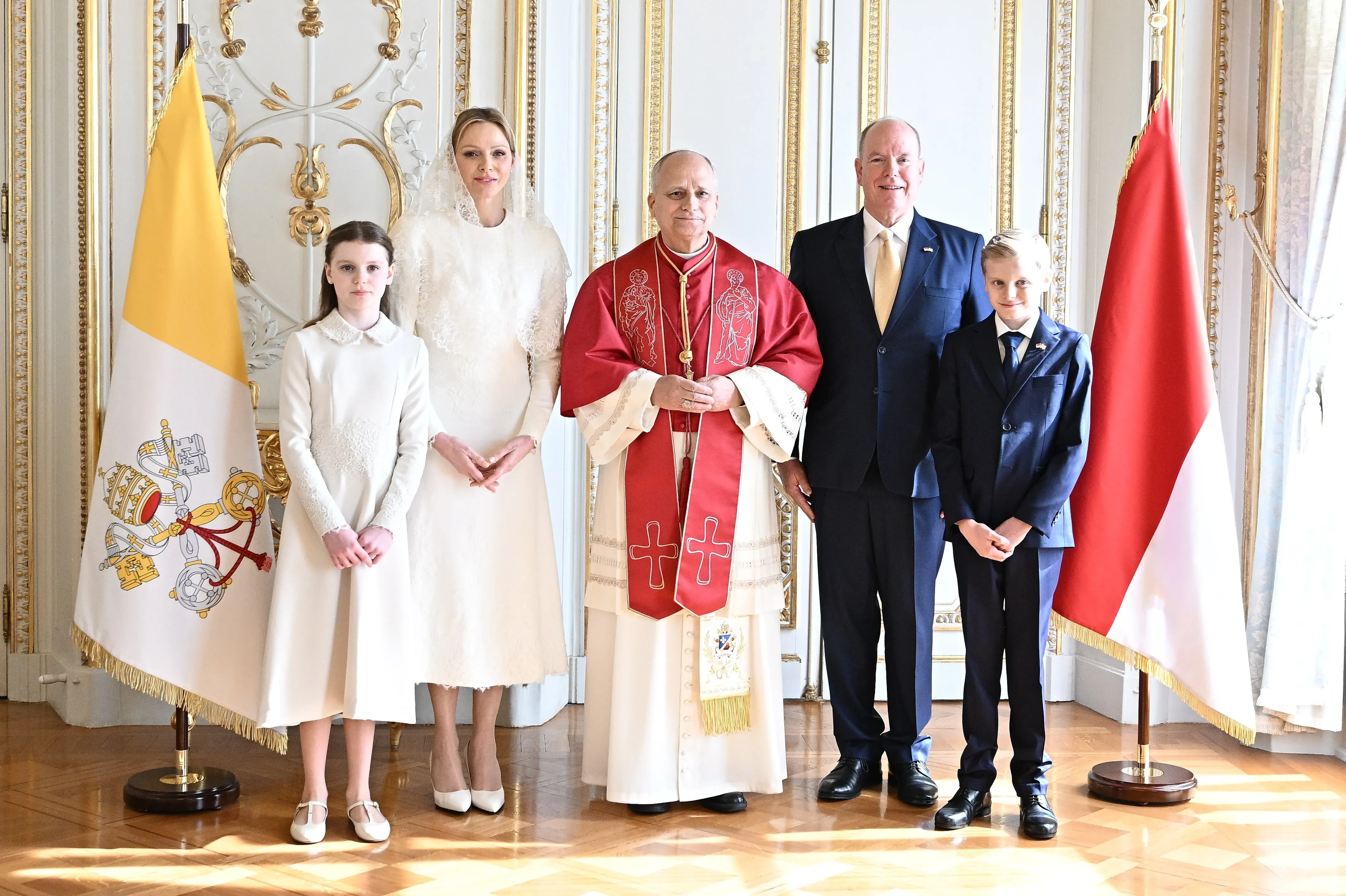 Князь Монако Альбер II и его жена, княгиня Шарлен, вместе с детьми встретились с папой римским Львом XIV. Для встречи Шарлен воспользовалась привилегией представительниц королевских семей, исповедующих католицизм, и надела белое платье.