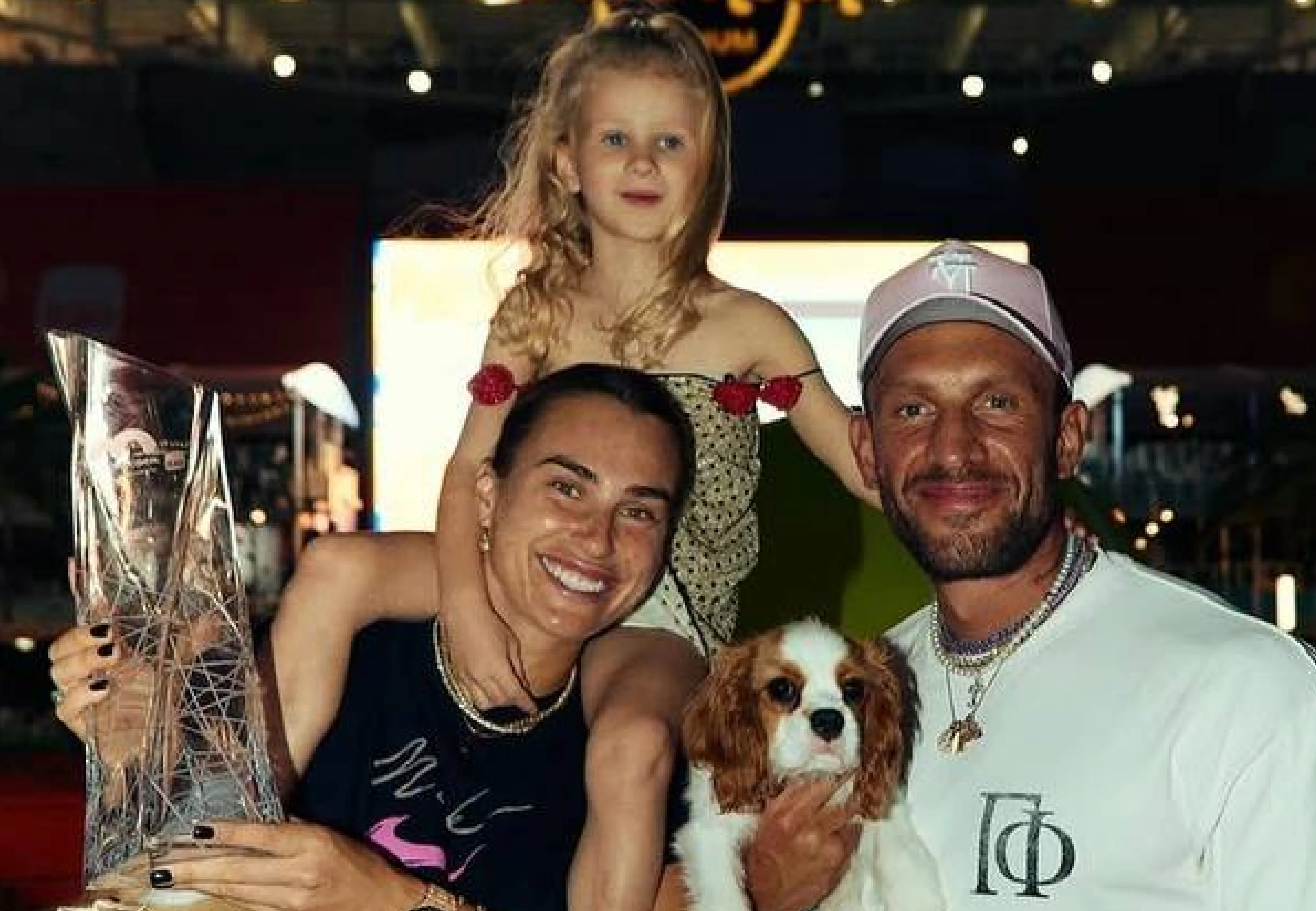 Поддержать Соболенко приехали близкие: спортсменка показала фото со своим женихом Георгиосом Франгулисом и его дочерью от первого брака. Судя по кадрам, у Арины очень тёплые отношения с девочкой.