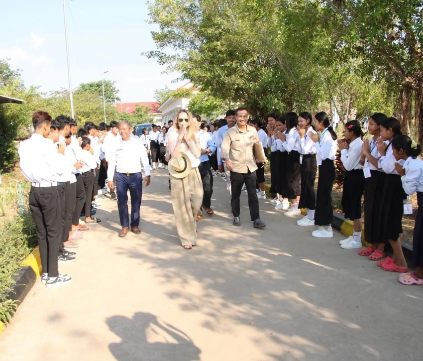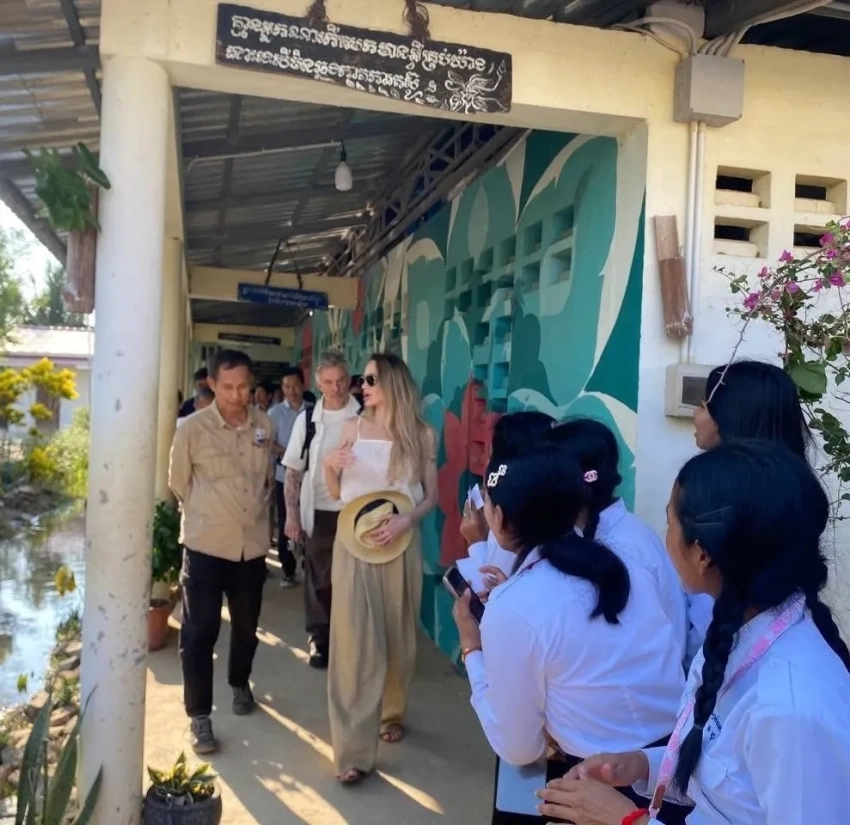 Анджелина Джоли прибыла с визитом в Камбоджу. 50-летняя голливудская актриса посетила среднюю школу "Самлот" в провинции Баттамбанг, где встретилась с учениками и сотрудниками.
