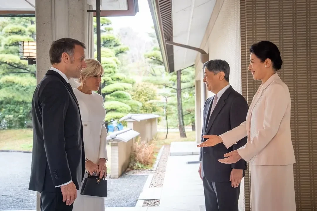 В Токио 48-летнего Эммануэля и 72-летнюю Брижит Макрон пригласили в Императорский дворец, где они встретились с императором Японии Нарухито и его супругой, императрицей Масако. Первая леди Франции появилась перед главами государства в белом платье и с сумкой Louis Vuitton.