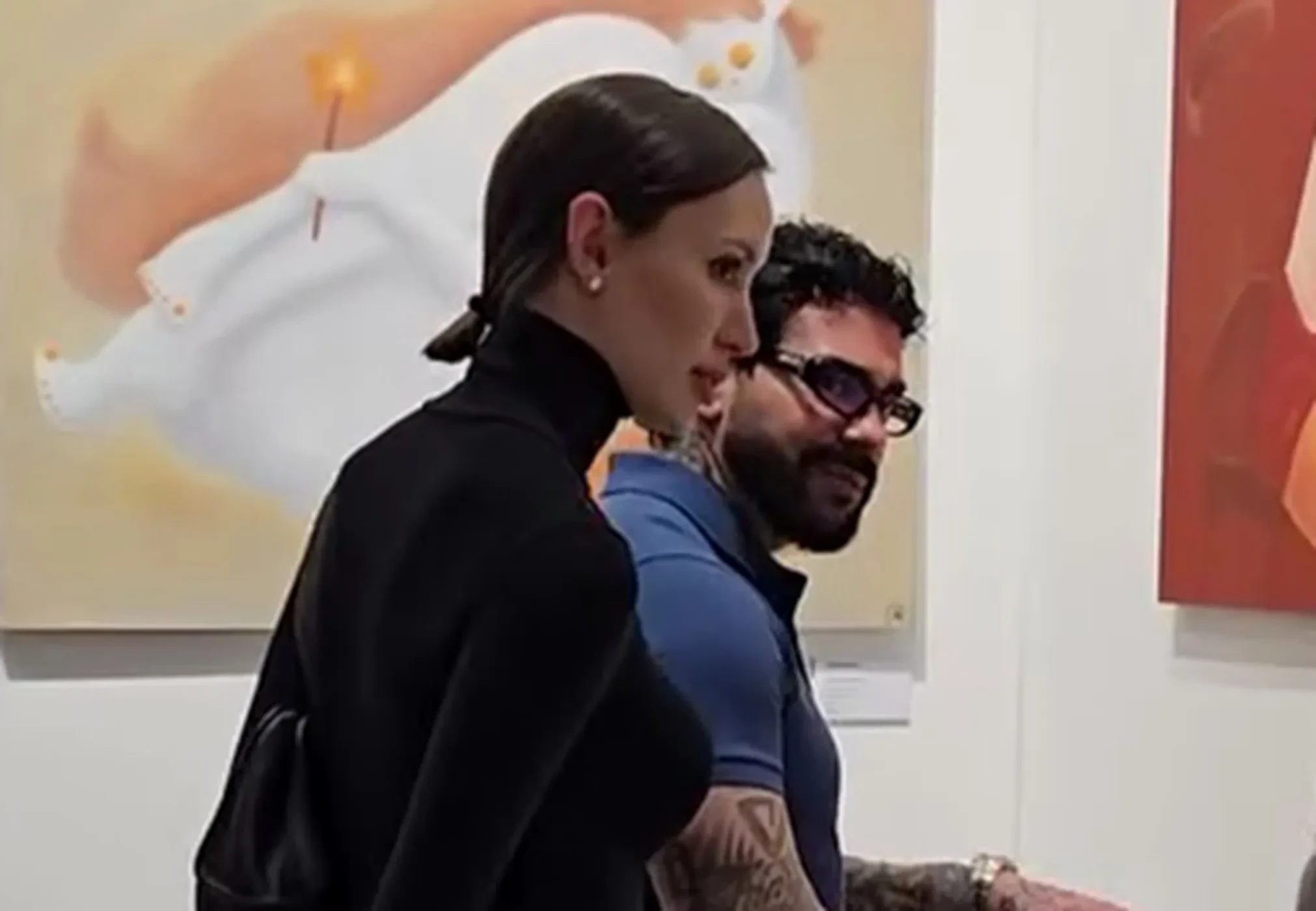 42-летний рэпер и 32-летняя модель вместе осмотрели несколько стендов.